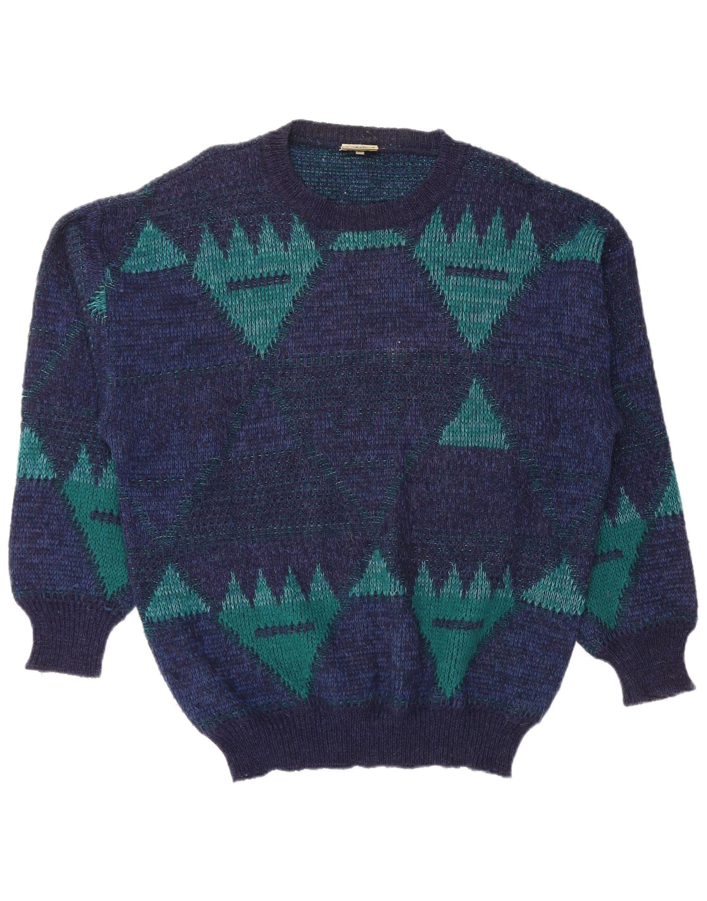 4 CASTELLA Mens Boat Neck Jumper Sweater IT 56 XL Navy Blue Geometric