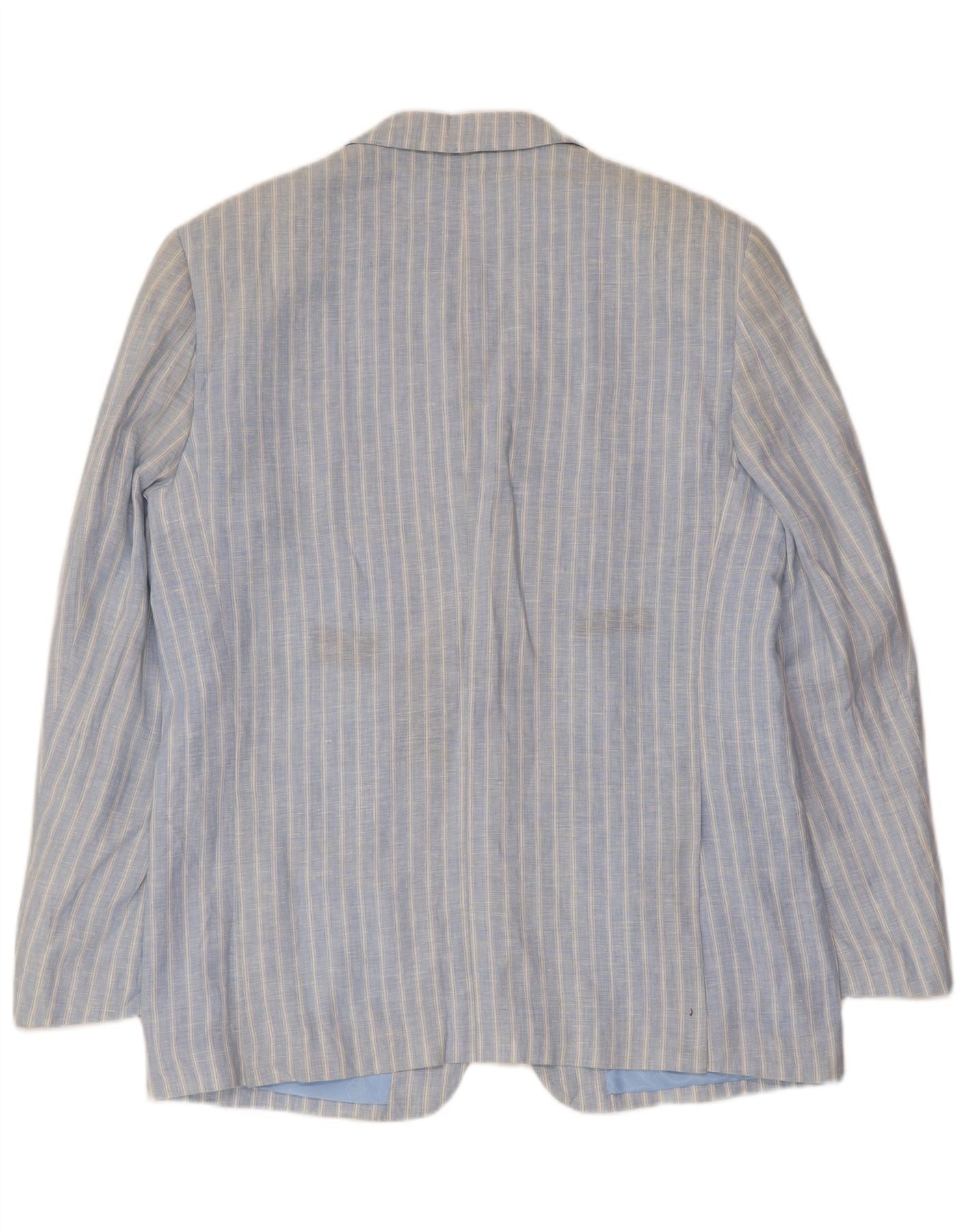 A.Basile Mens 3 Button Blazer Jacket IT 50 Large Blue Striped Linen