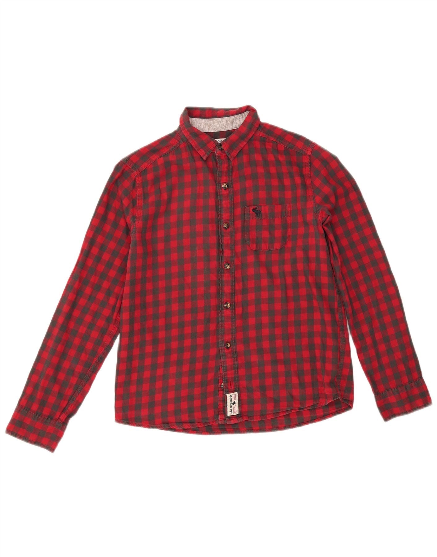 ABERCROMBIE & FITCH Boys Flannel Shirt 11-12 Years Red Gingham Cotton