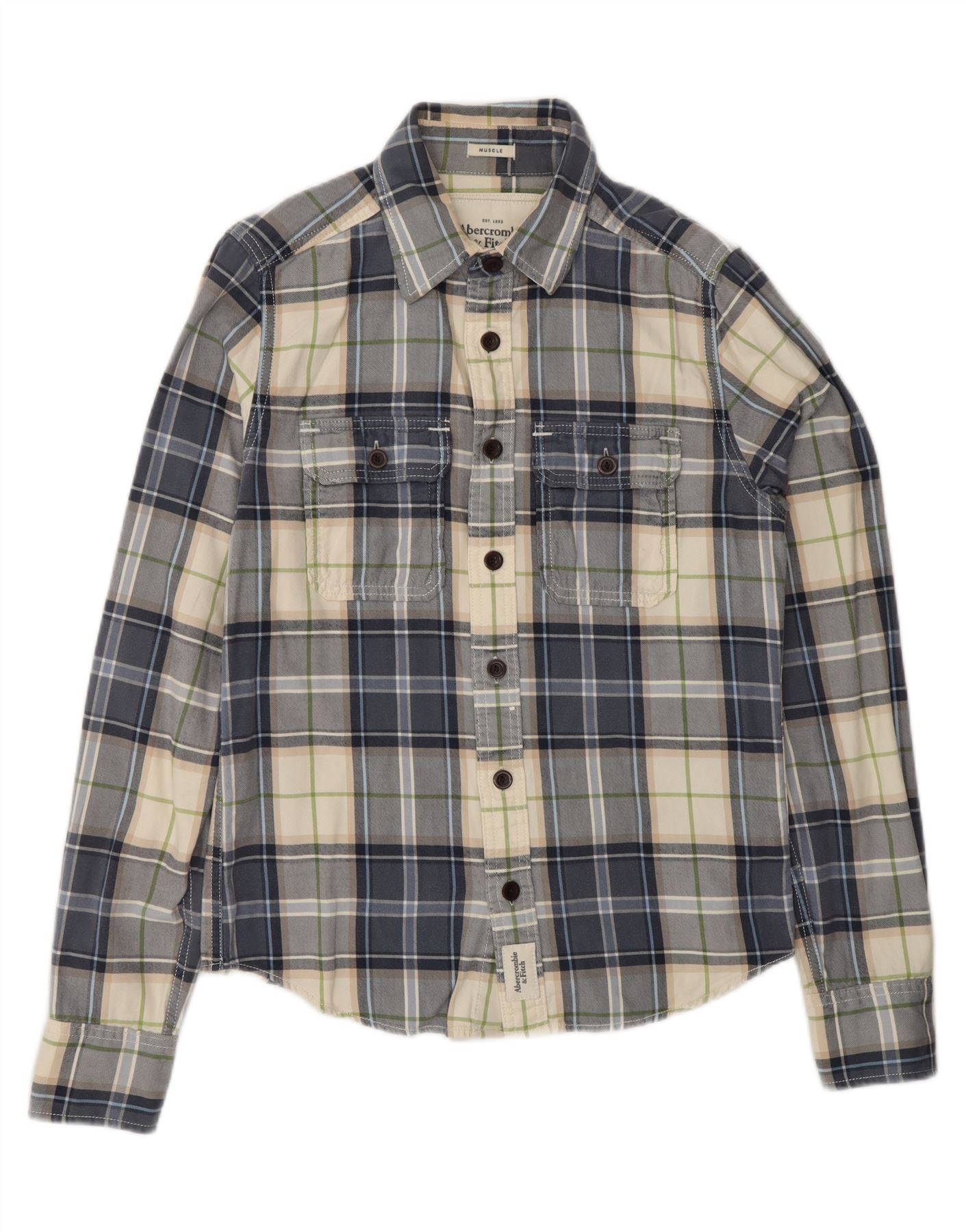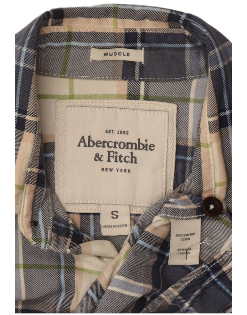 ABERCROMBIE & FITCH Mens Muscle Flannel Shirt Small Blue Check Cotton