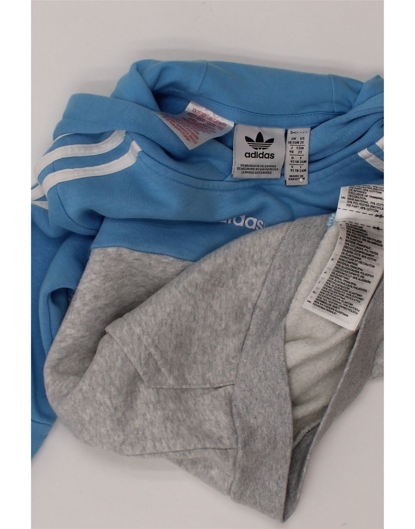 ADIDAS Baby Boys Hoodie Jumper 18-24 Months Blue Colourblock Cotton