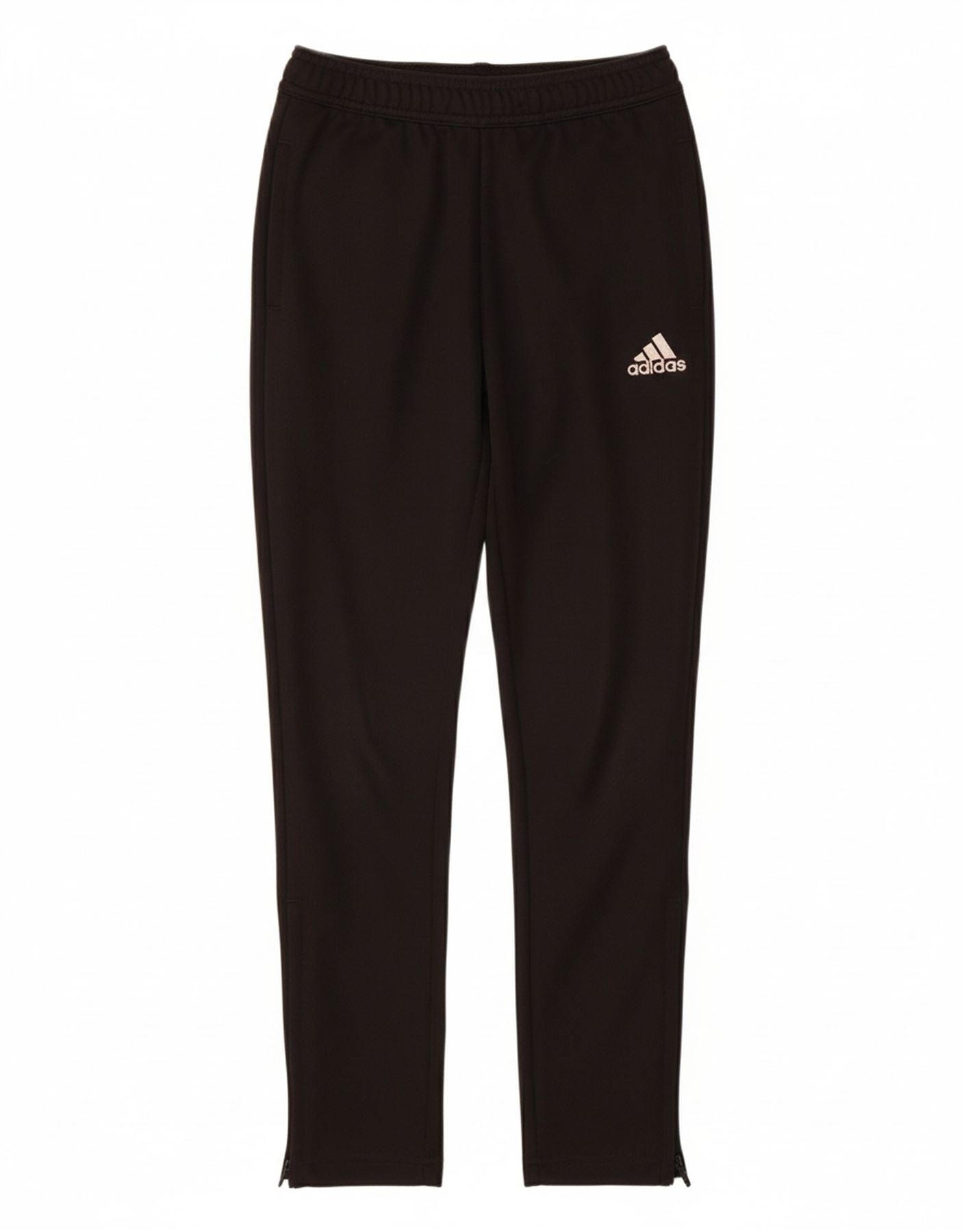 - AI Description: These Adidas boys tracksuit trousers are crafted from 100 percent recycled polyester knit fabric. They feature an athletic joggers fit for comfortable movement. The pull on design ensures easy wear, complemented by practical ankle zips. Side pockets add convenience, while the Adidas logo provides a signature detail. These breathable trousers are perfect for sports activities.