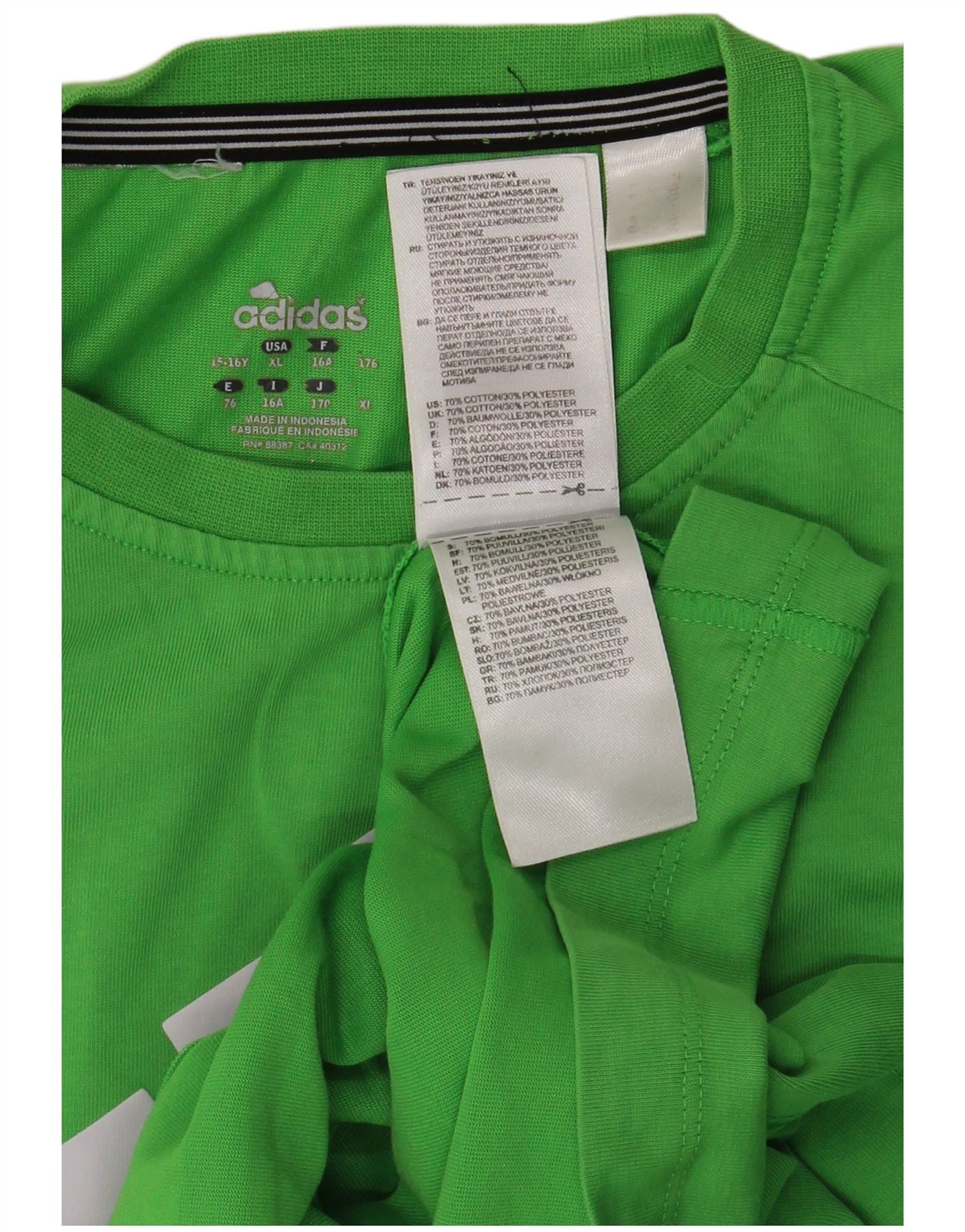 ADIDAS Boys Climalite Graphic T-Shirt Top 15-16 Years Green Cotton