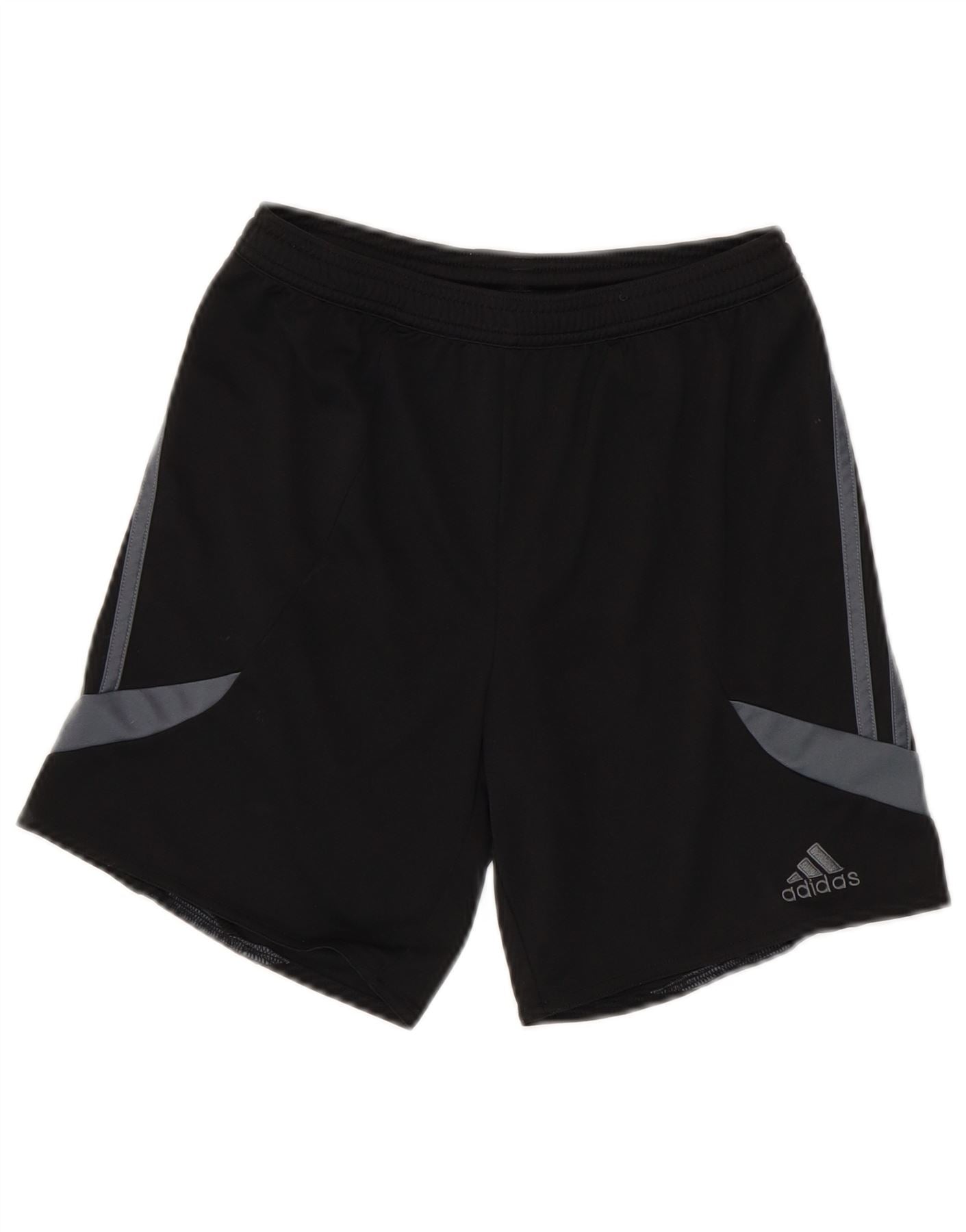 ADIDAS Boys Climalite Sport Shorts 11-12 Years Large Black Colourblock