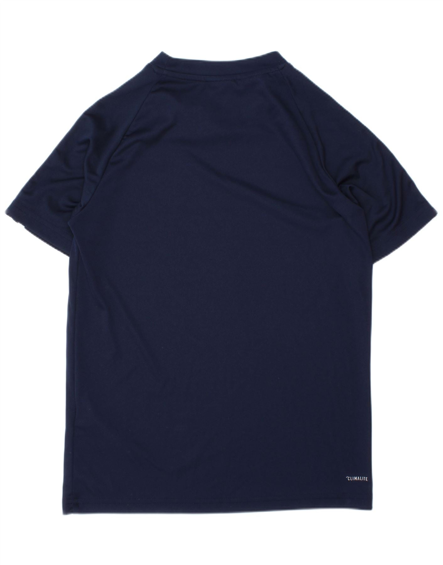 ADIDAS Boys Climalite T-Shirt Top 9-10 Years Navy Blue Polyester