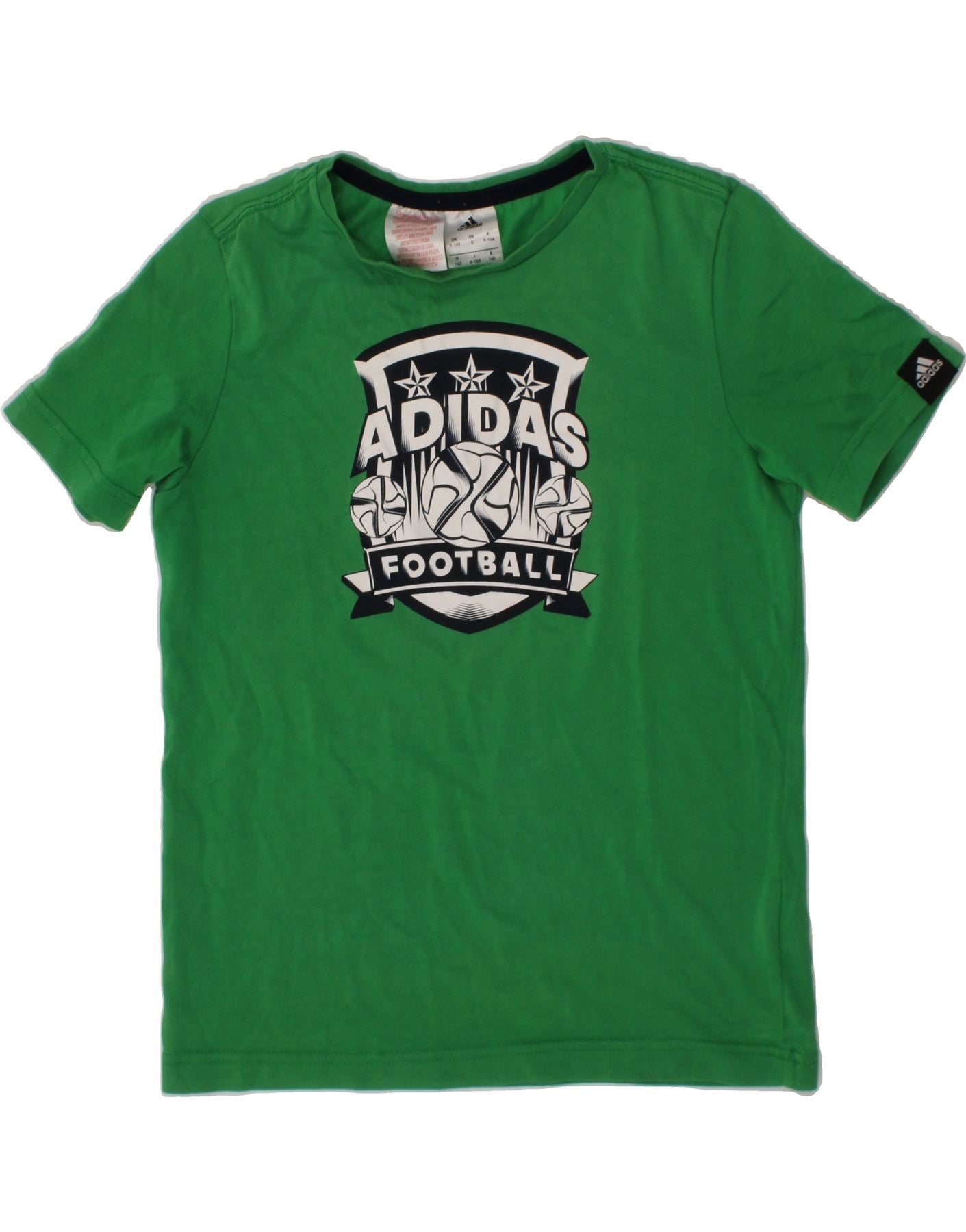 ADIDAS Boys Football Graphic T-Shirt Top 9-10 Years Green Cotton