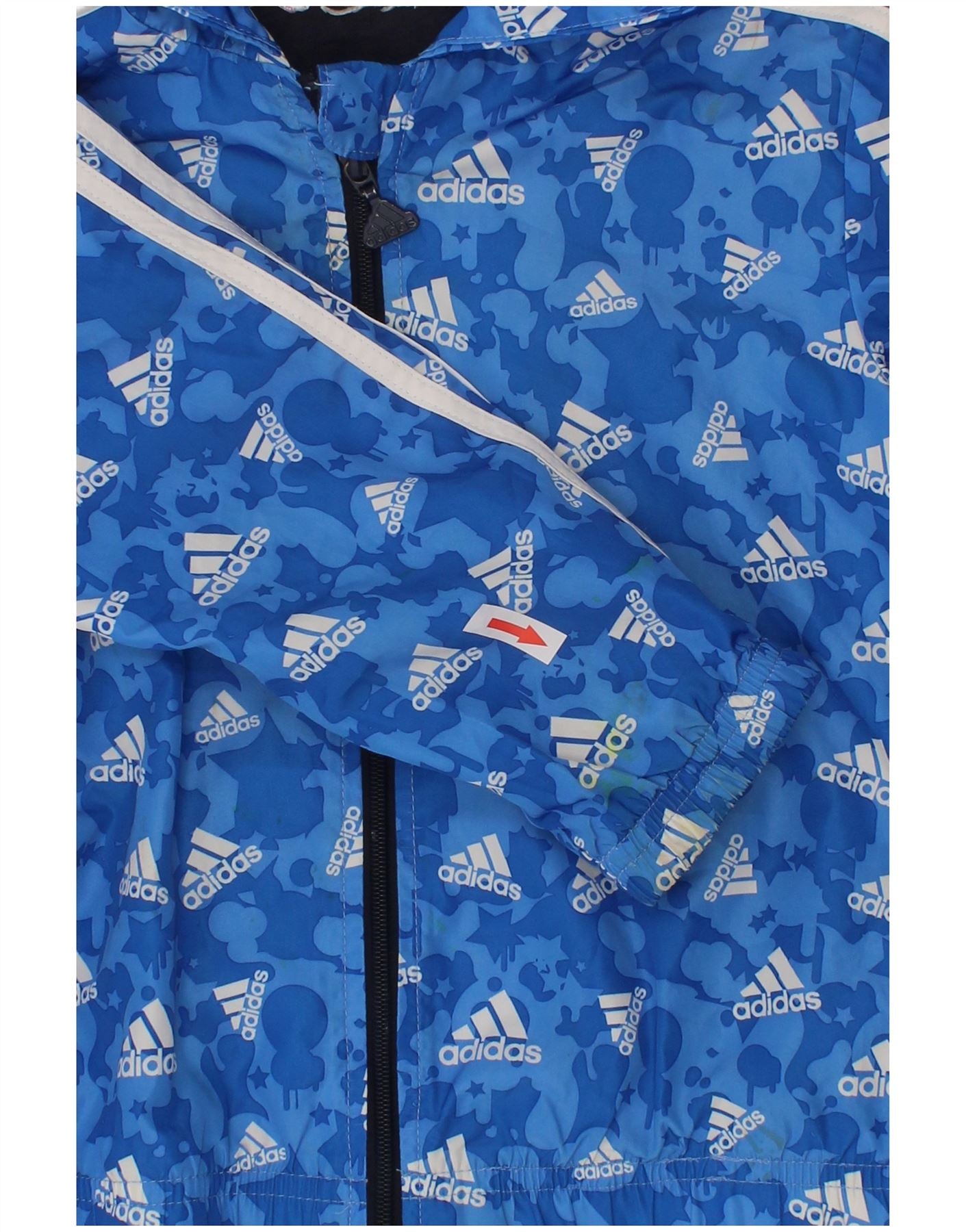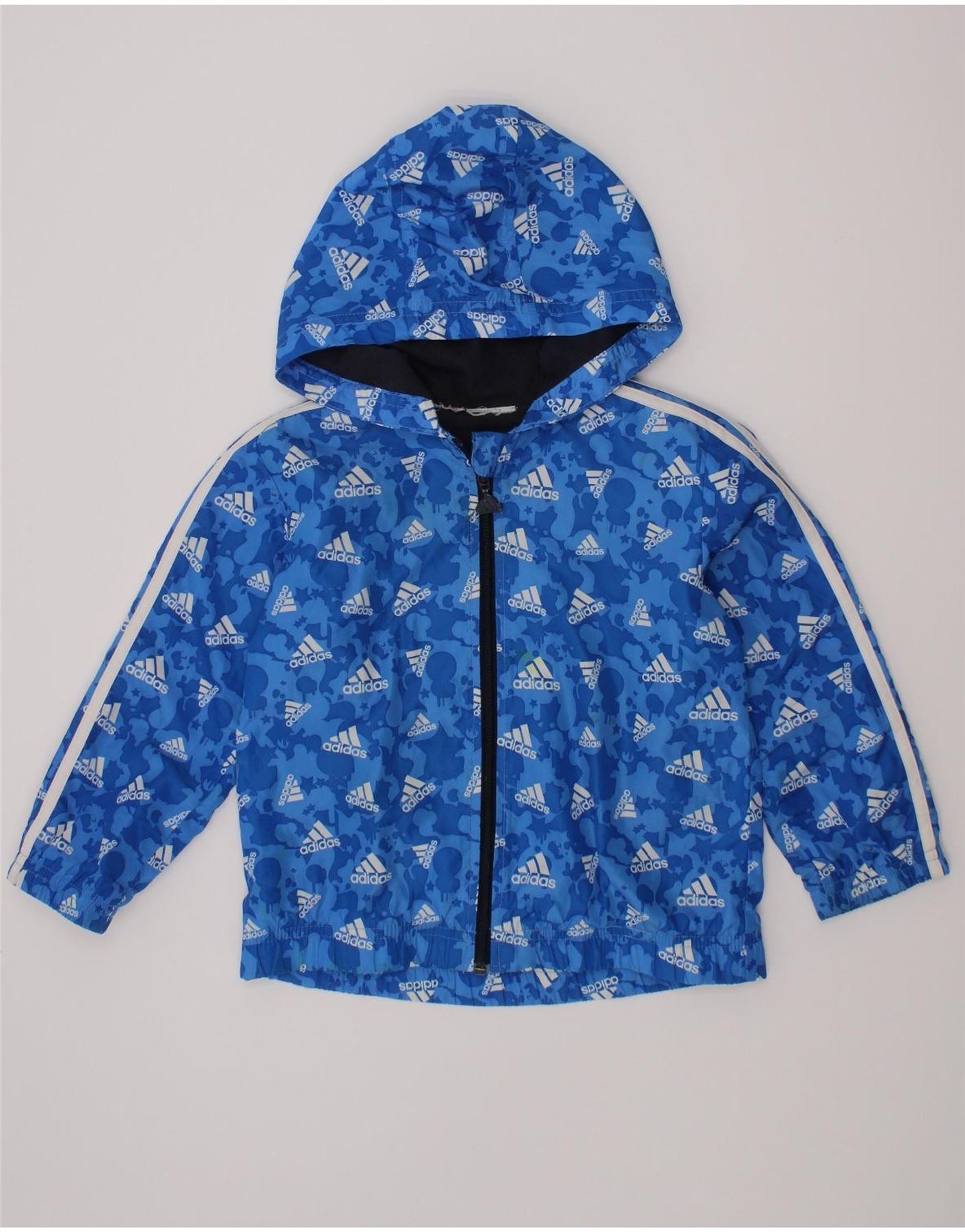 Adidas Boys Graphic Hooded Windbreaker Jacket 2-3 Years Blue Polyester