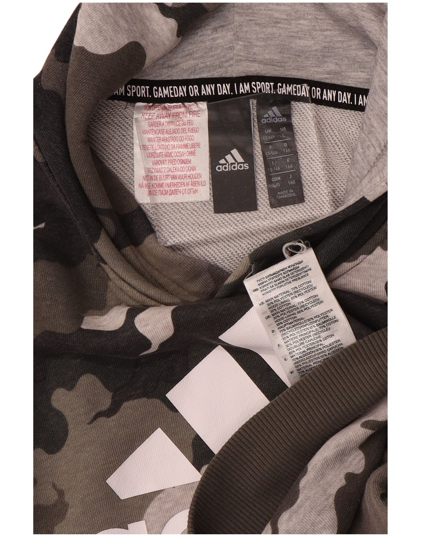 ADIDAS Boys Graphic Hoodie Jumper 13-14 Years Brown Camouflage Cotton