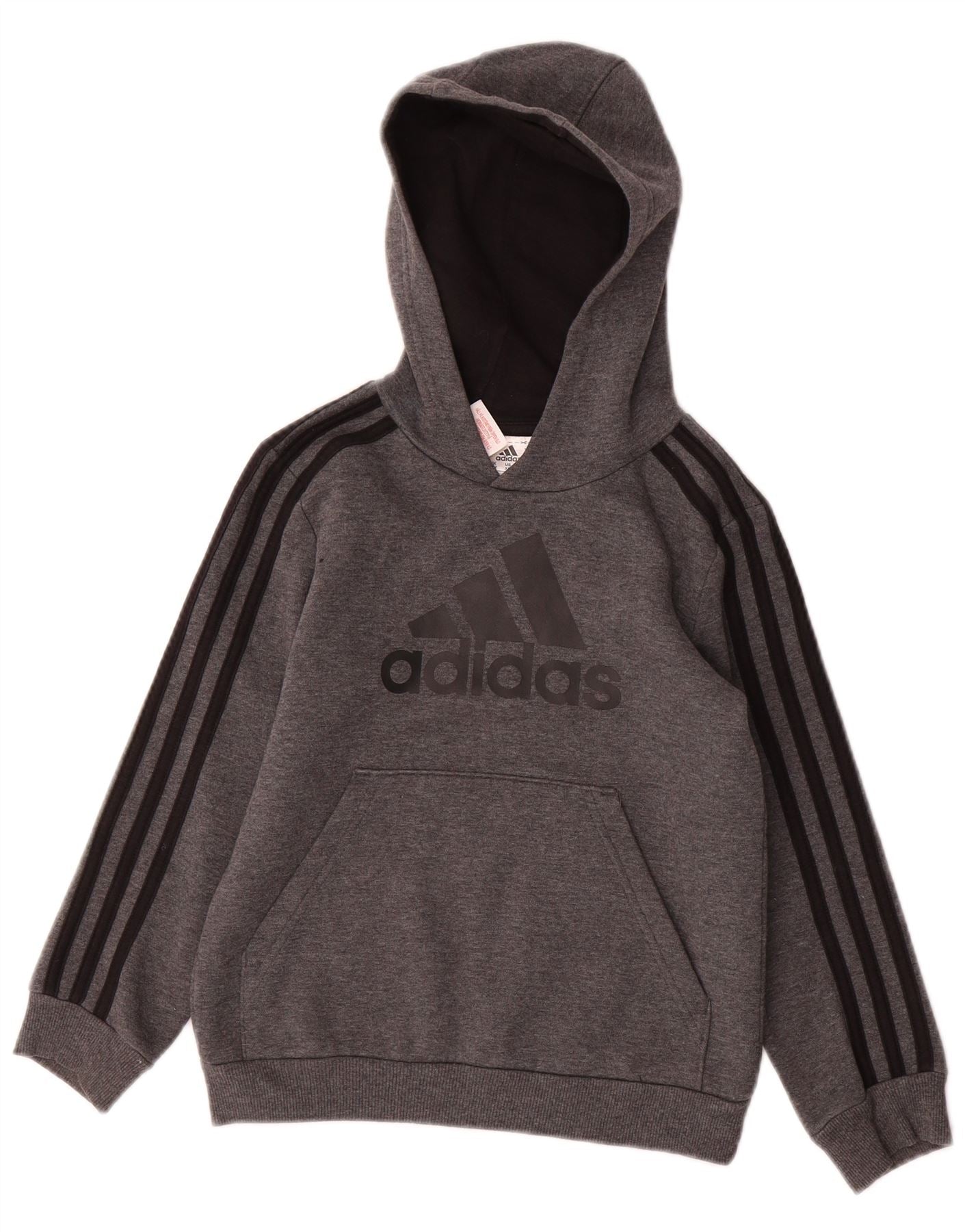 ADIDAS Boys Graphic Hoodie Jumper 7-8 Years Grey Polyester