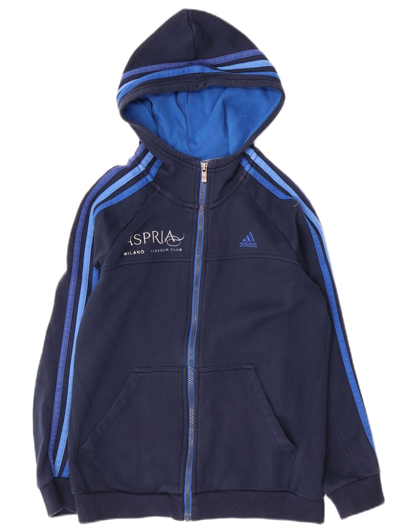 ADIDAS Boys Graphic Zip Hoodie Sweater 11-12 Years Navy Blue Cotton