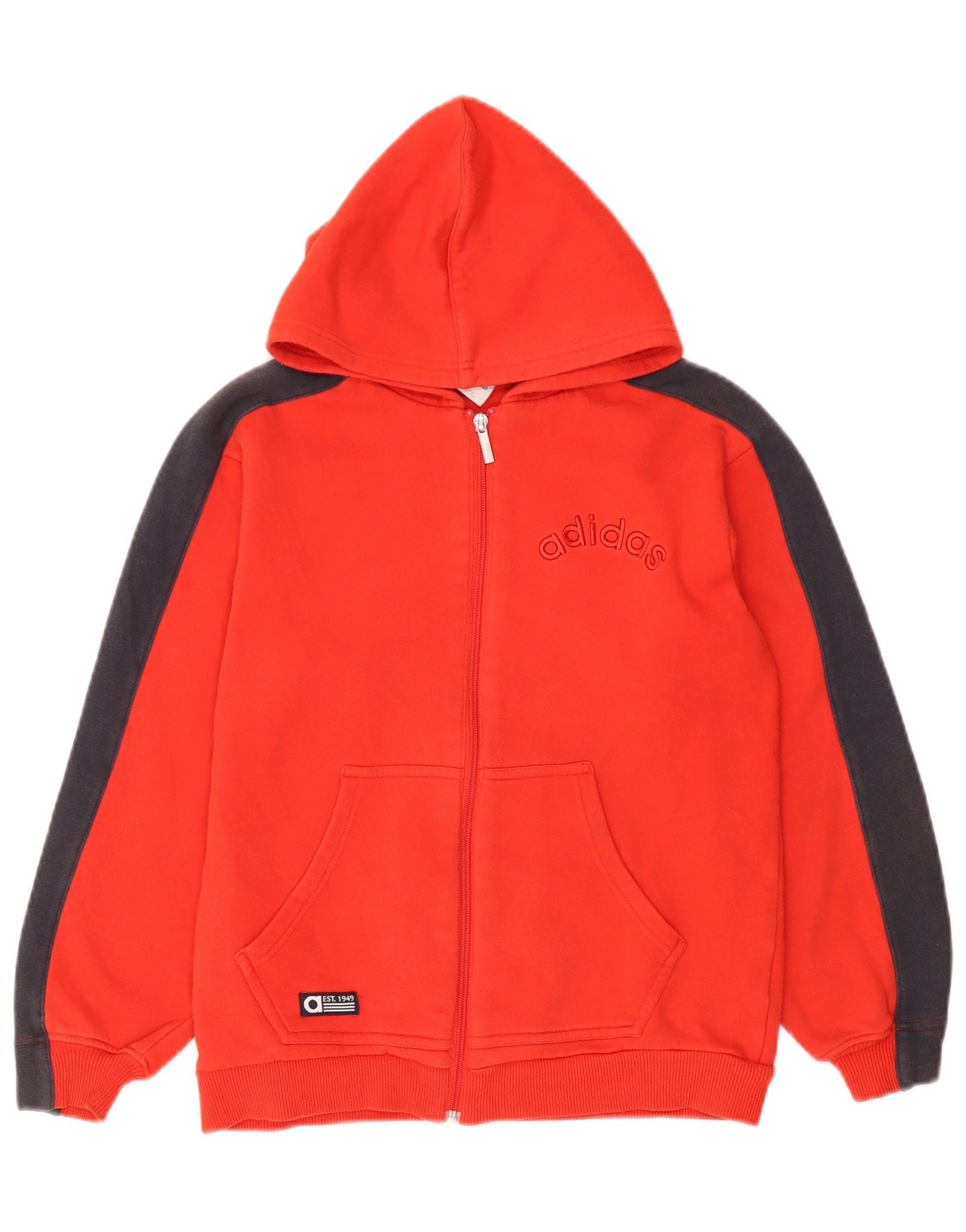 ADIDAS Boys Graphic Zip Hoodie Sweater 11-12 Years Red Colourblock Cotton
