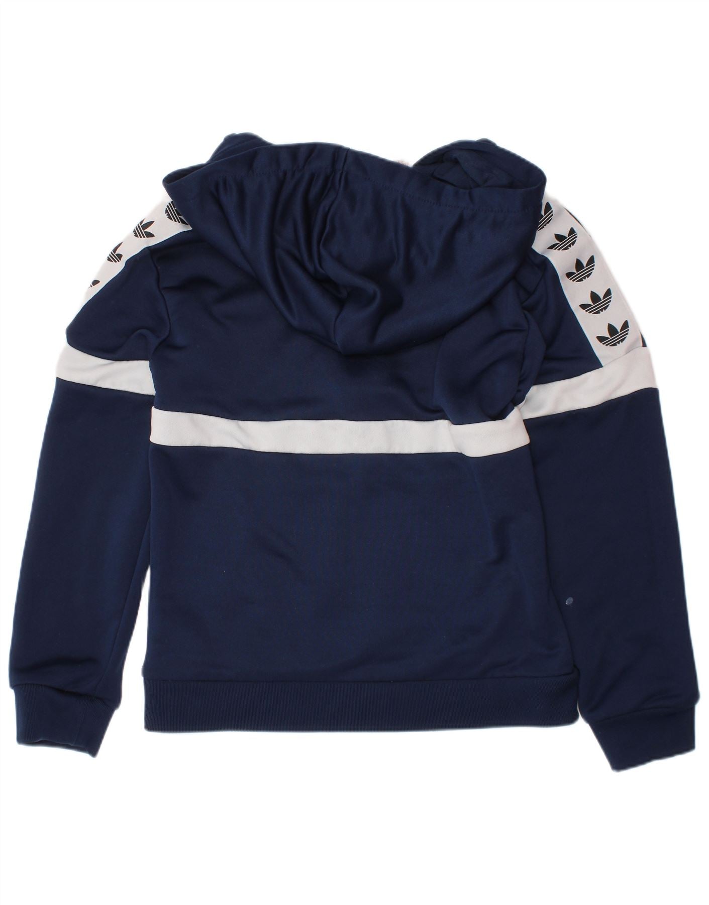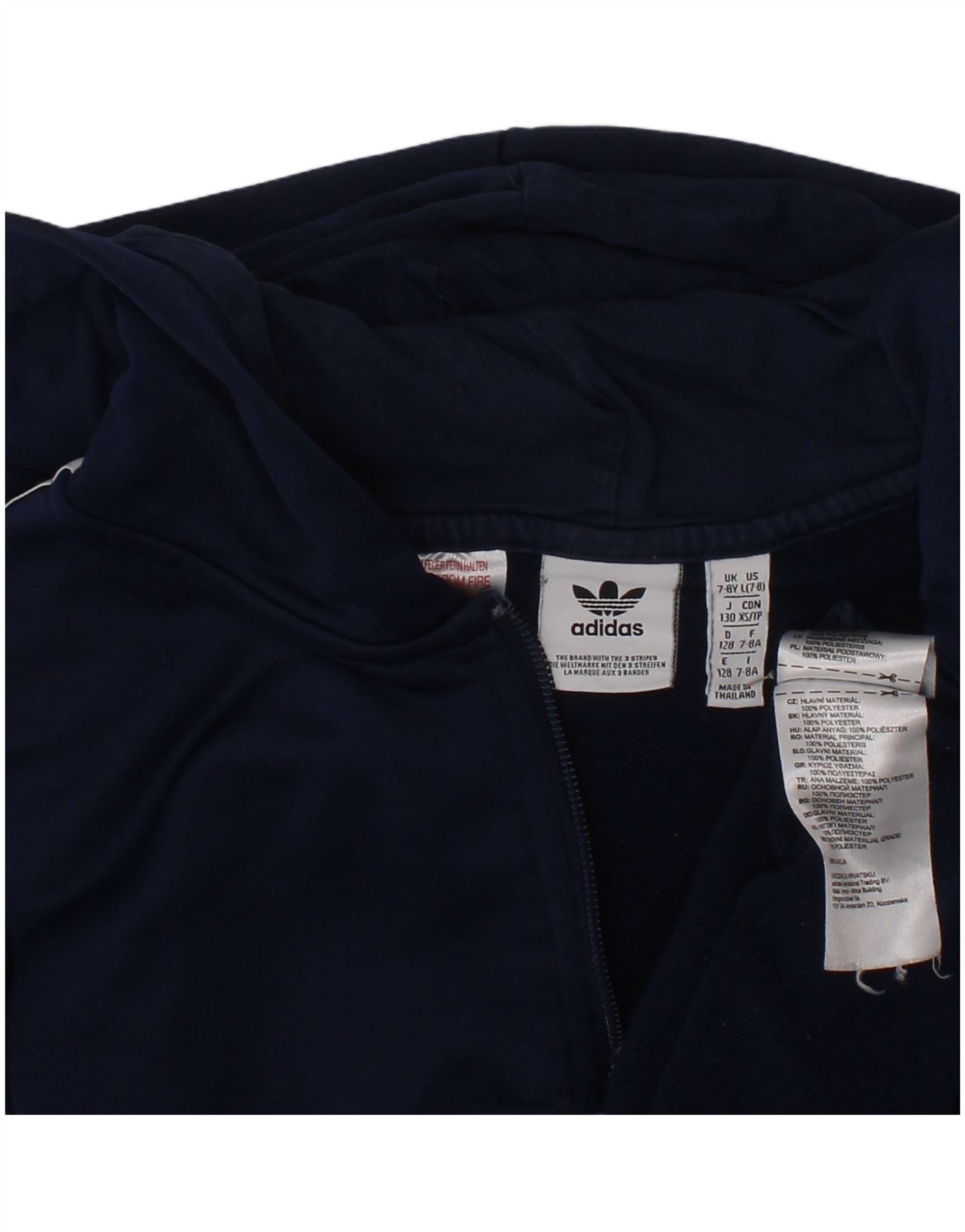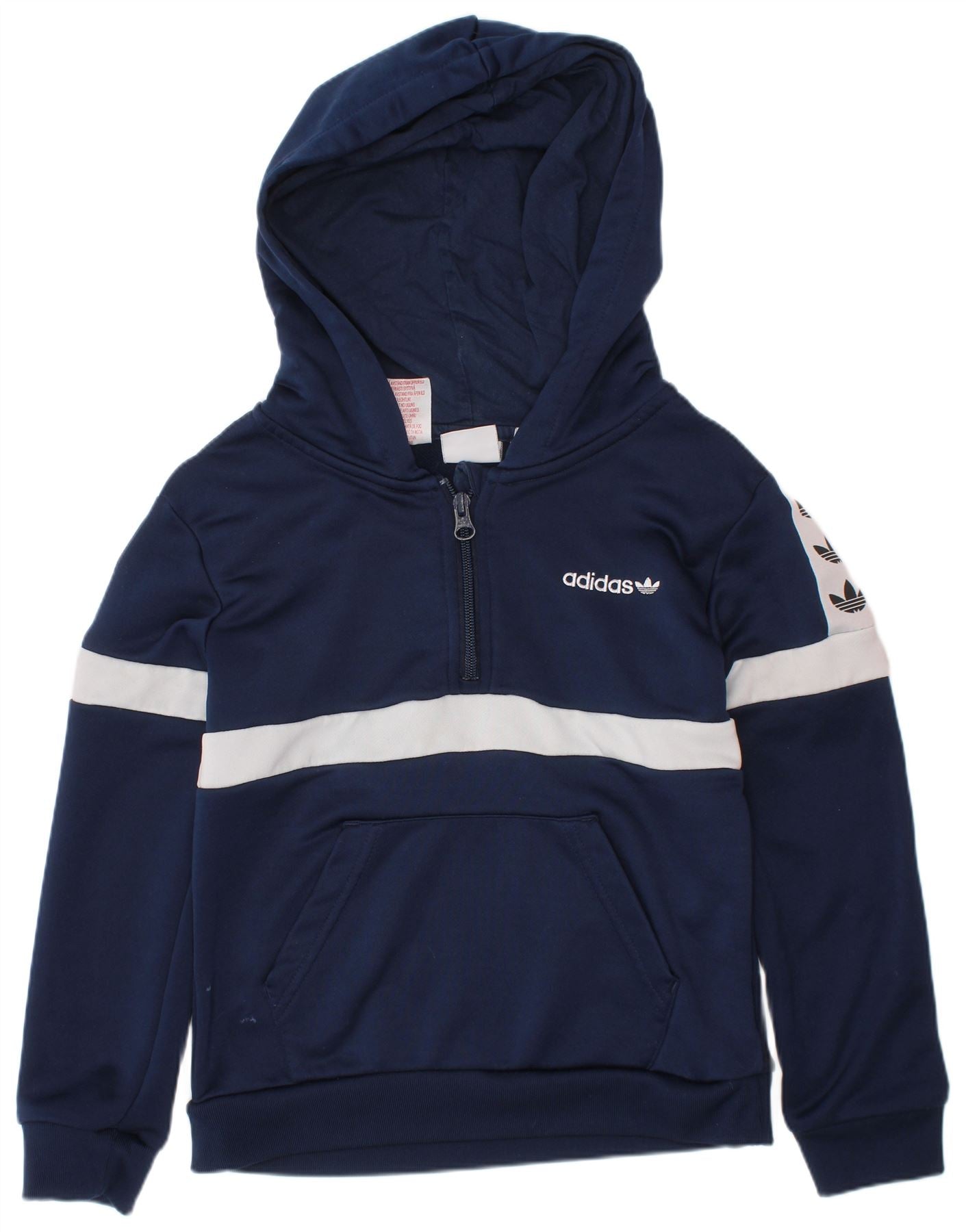 ADIDAS Boys Graphic Zip Neck Hoodie Jumper 7-8 Years Navy Blue Colourblock
