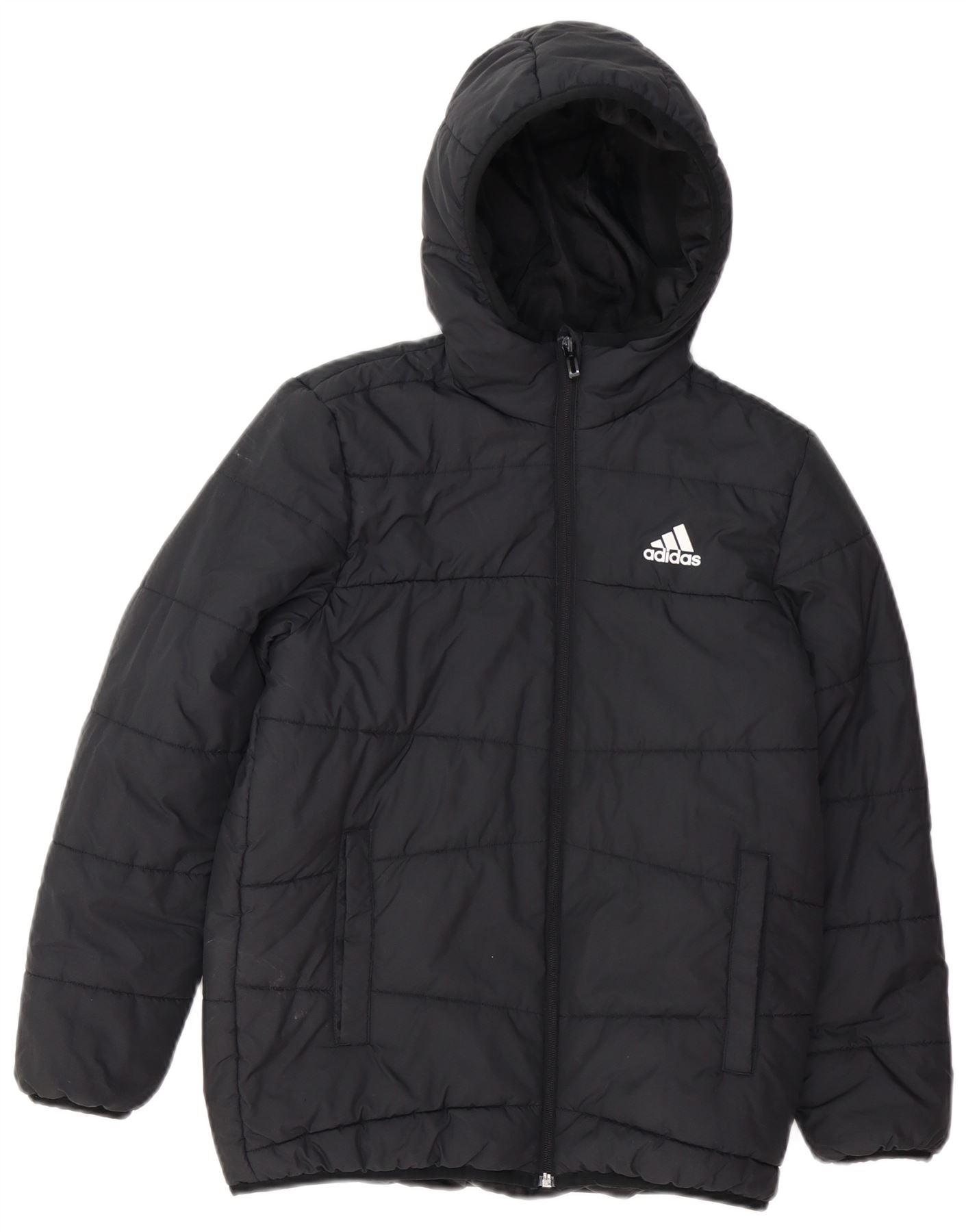 ADIDAS Boys Hooded Padded Jacket 11-12 Years Black Polyester