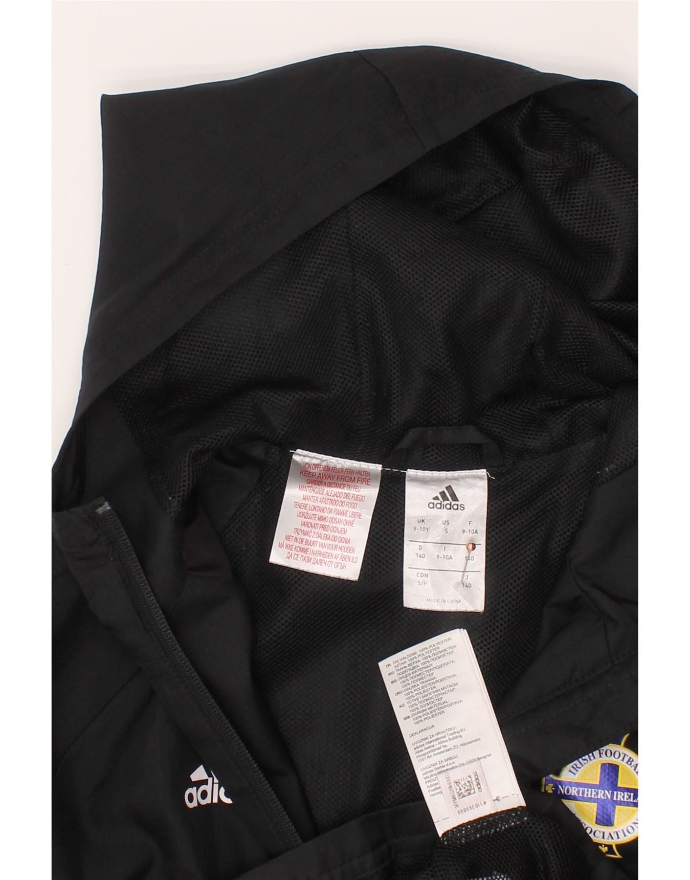 ADIDAS Boys Irish Football Hooded Tracksuit Top Jacket 9-10 Years Black
