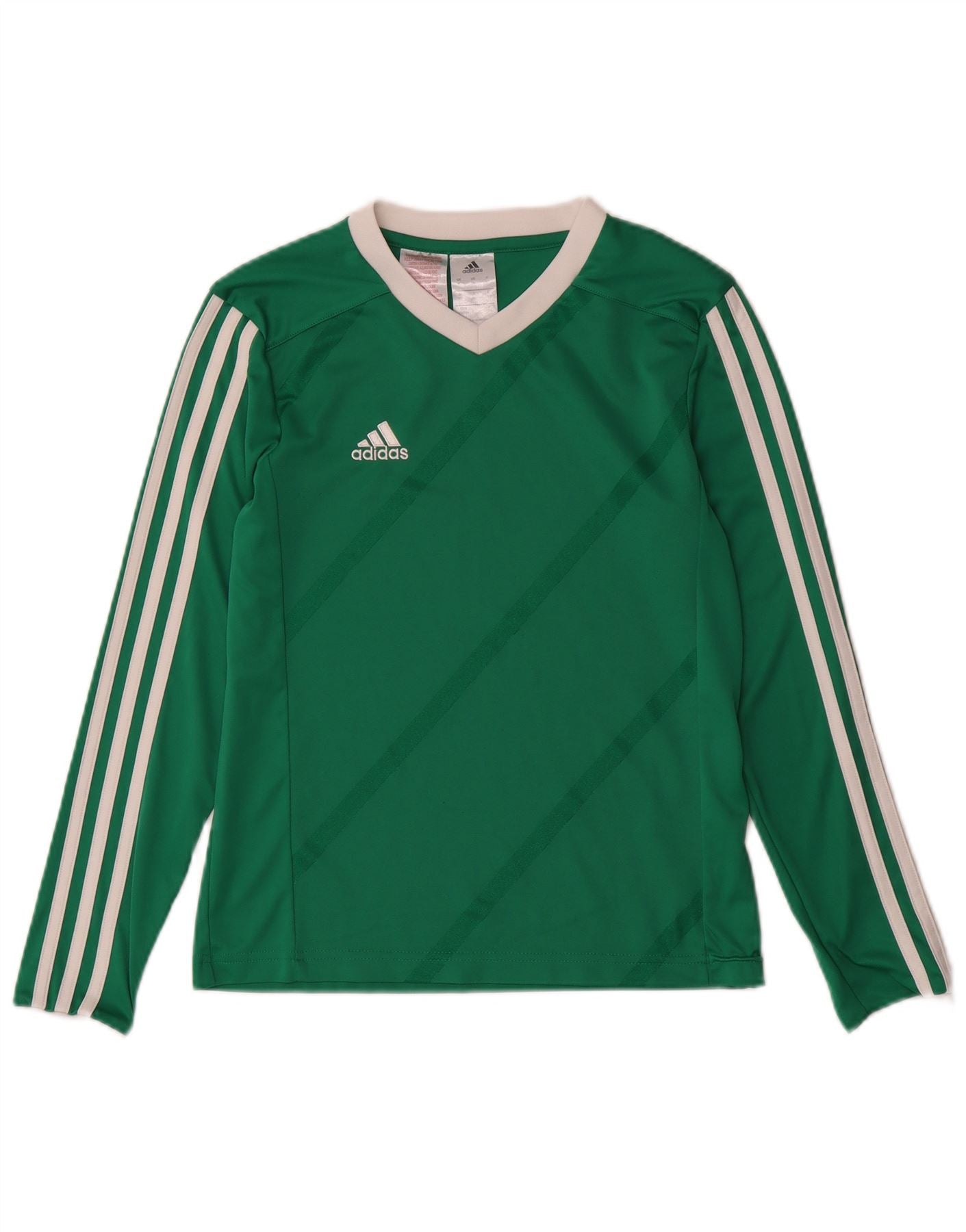 ADIDAS Boys Top Long Sleeve 11-12 Years Large Green Striped Polyester