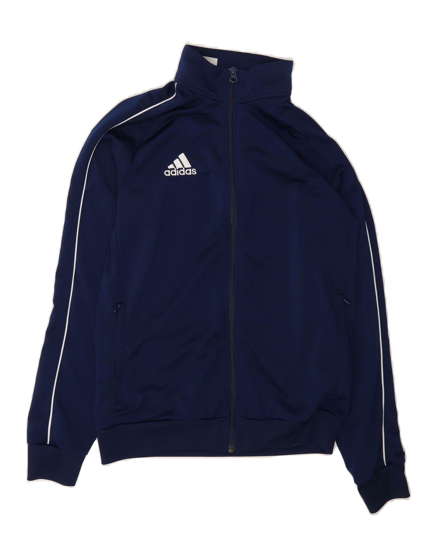 ADIDAS Boys Tracksuit Top Jacket 13-14 Years Navy Blue Polyester