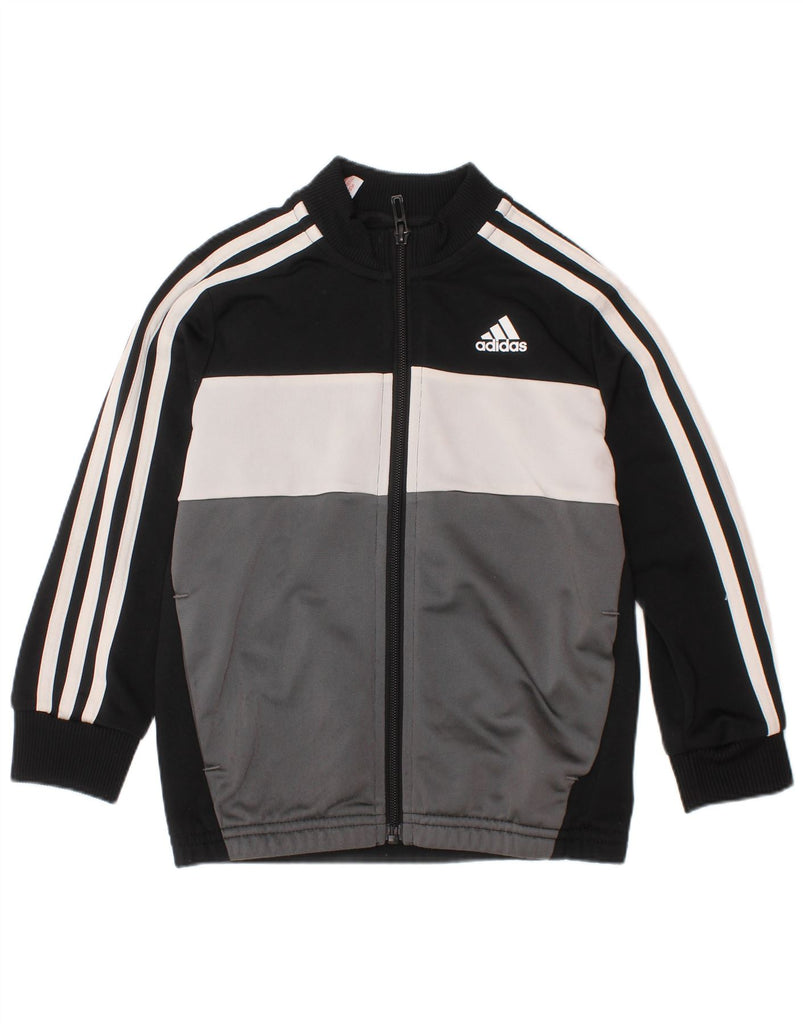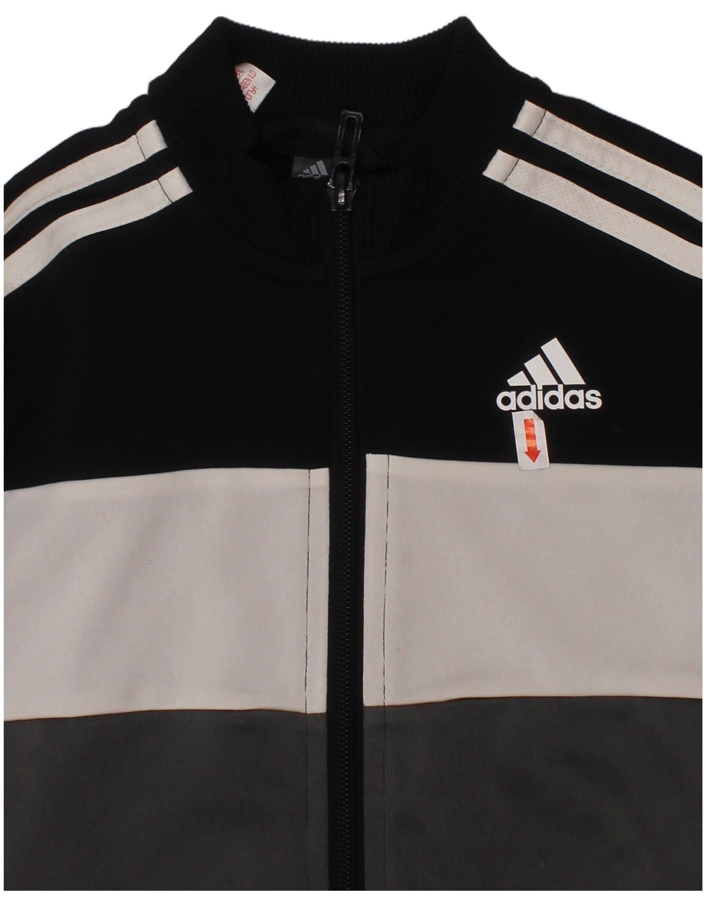 ADIDAS Boys Tracksuit Top Jacket 4-5 Years Black Colourblock Polyester