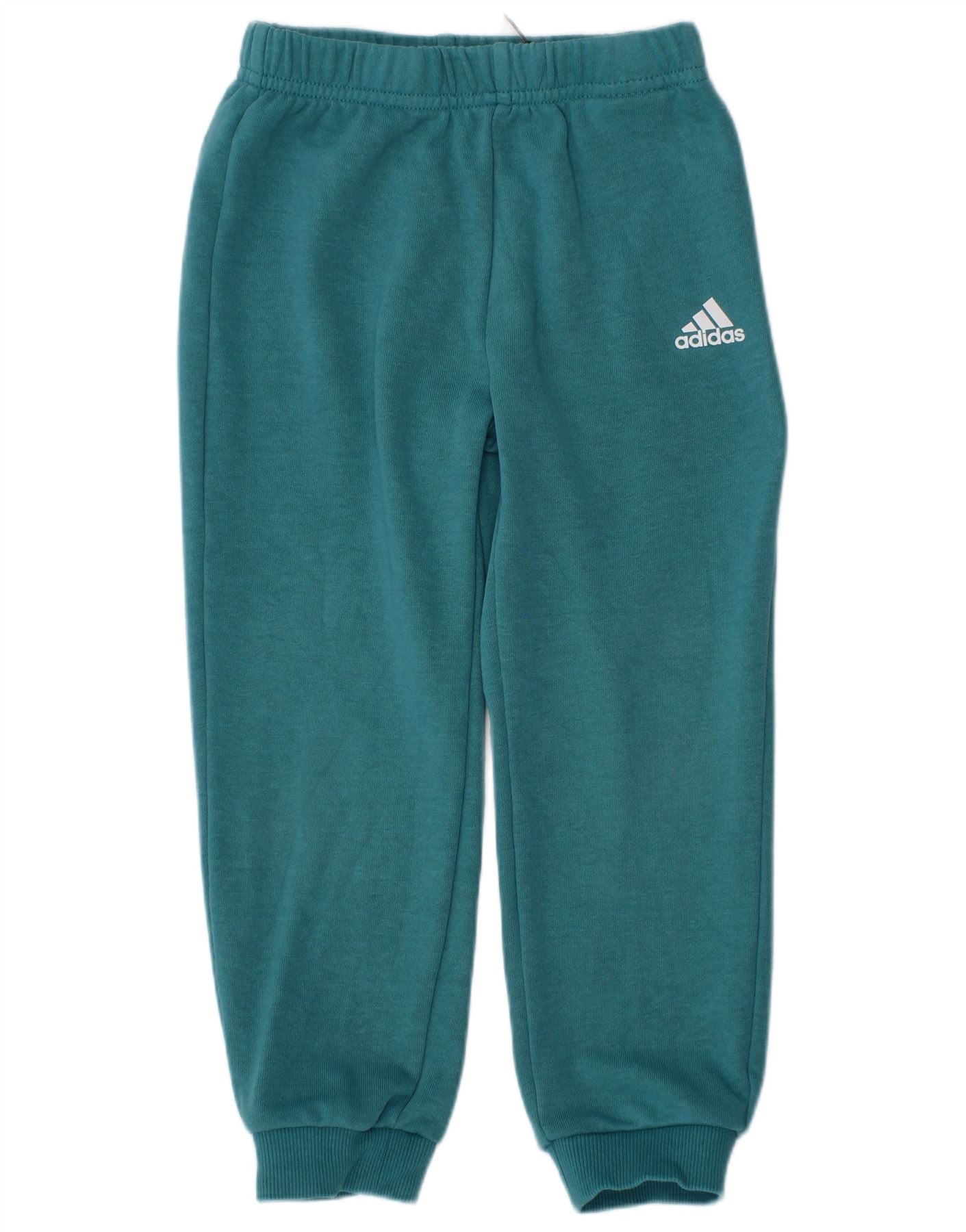 ADIDAS Boys Tracksuit Trousers Joggers 3-4 Years Green Cotton