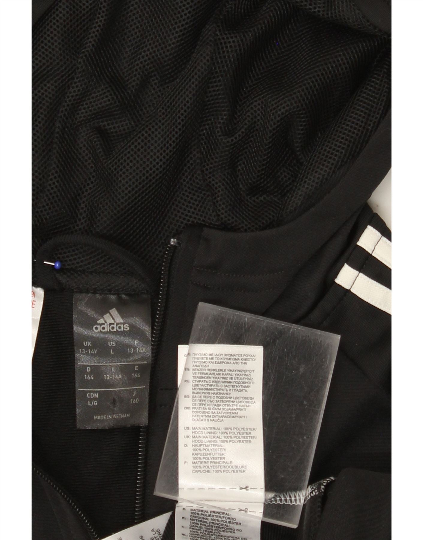 ADIDAS Boys Zip Hoodie Sweater 13-14 Years Black Colourblock Polyester