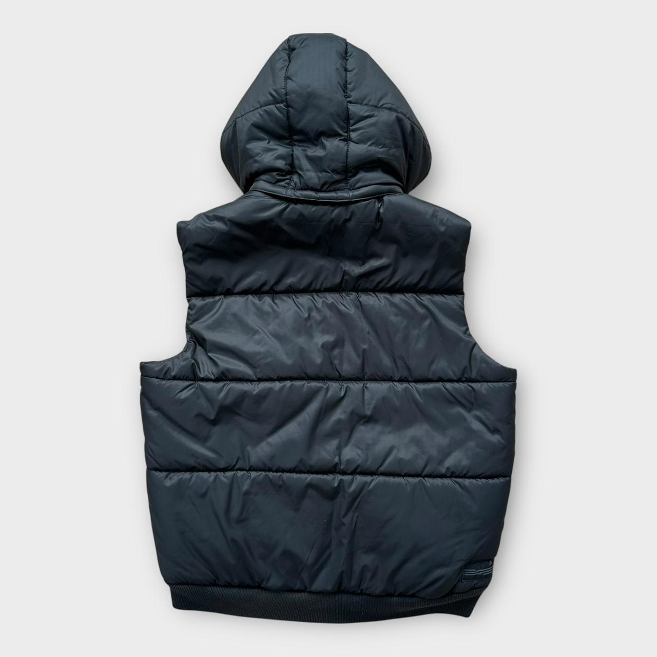 Vintage early 2000’s Y2K zip up Adidas gilet puffer jacket in black with detachable hood and embroidered logo on the chest