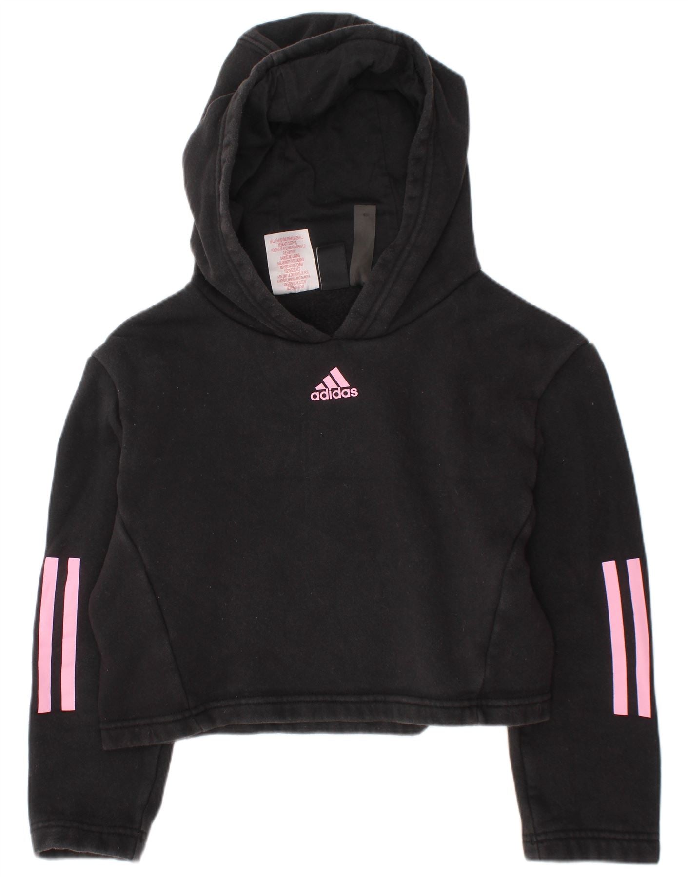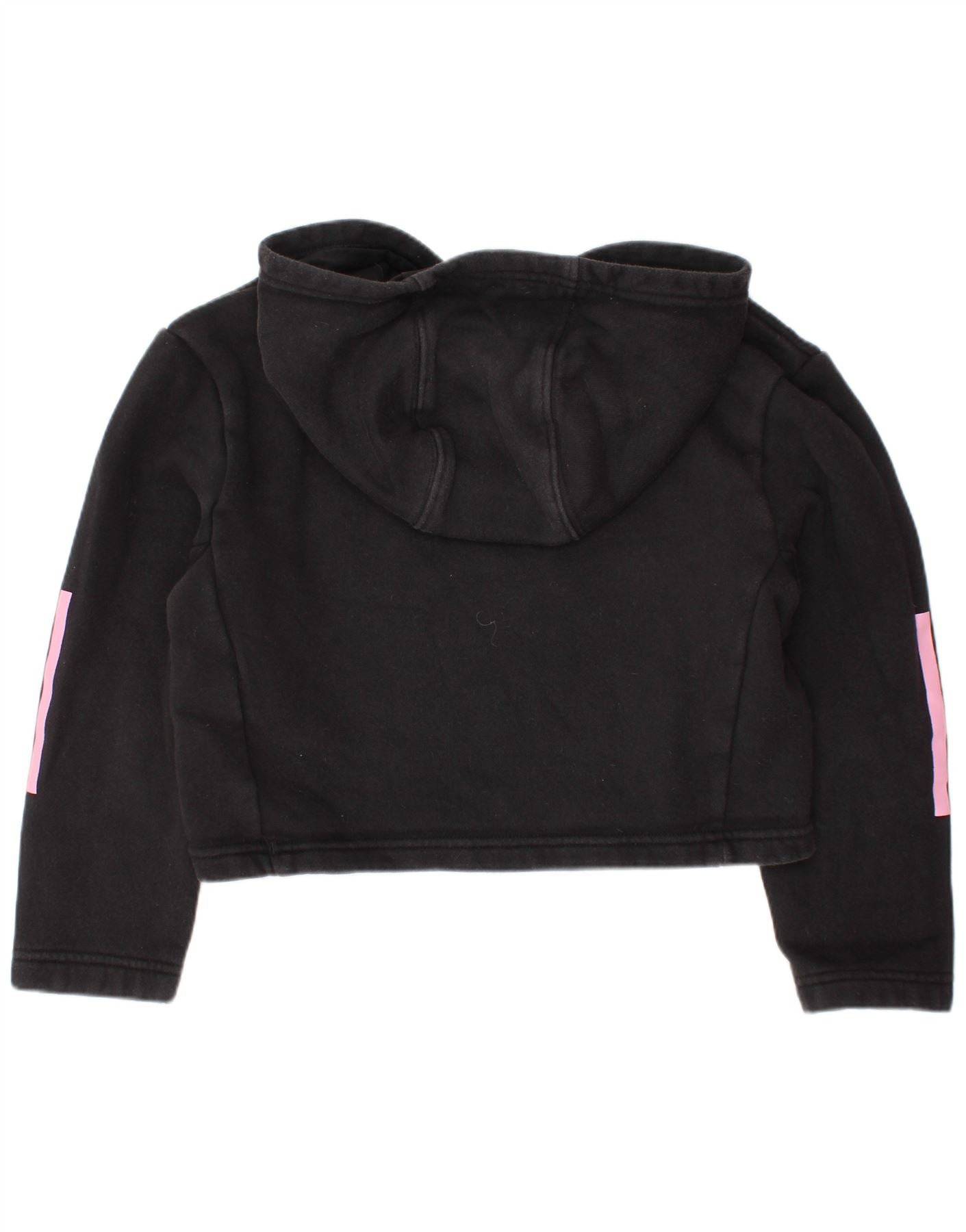 ADIDAS Girls Crop Hoodie Jumper 7-8 Years Black Cotton