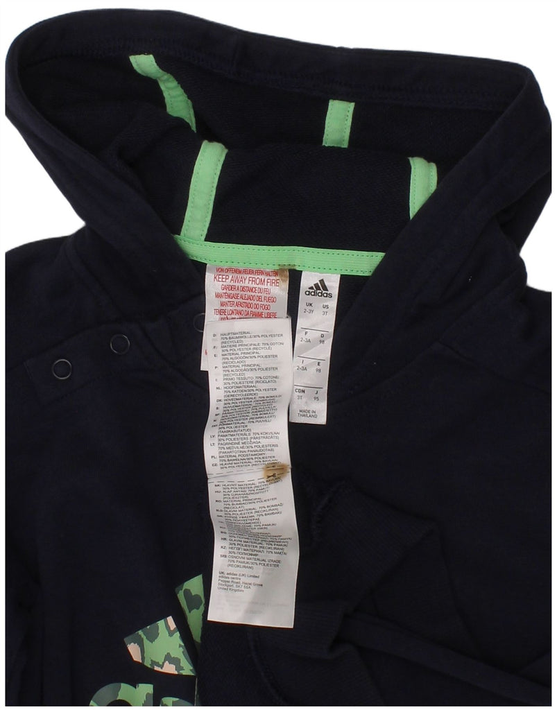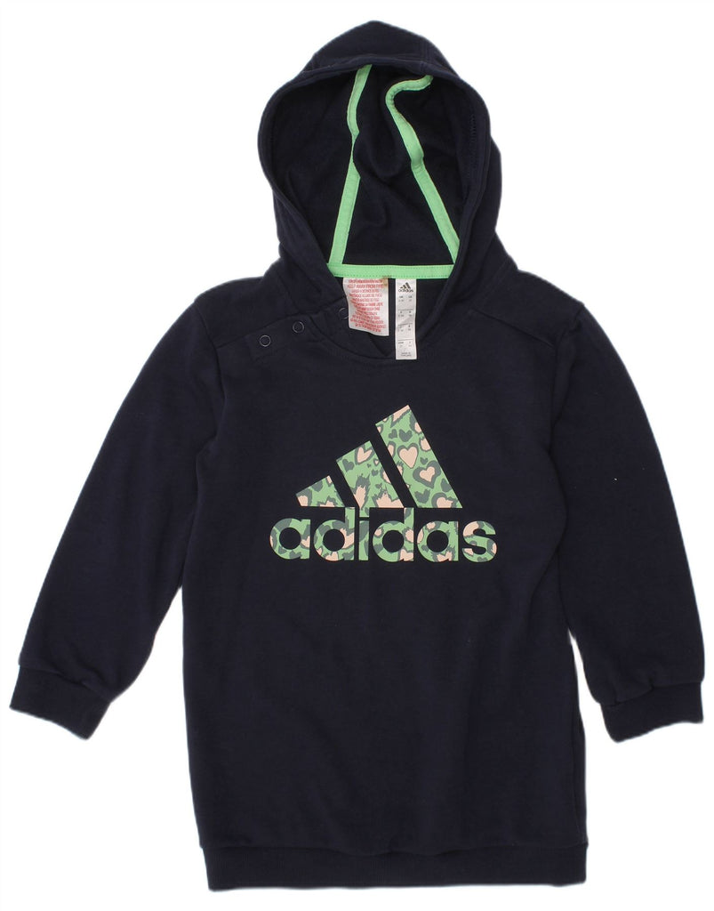 ADIDAS Girls Graphic Hoodie Jumper 2-3 Years Navy Blue Cotton