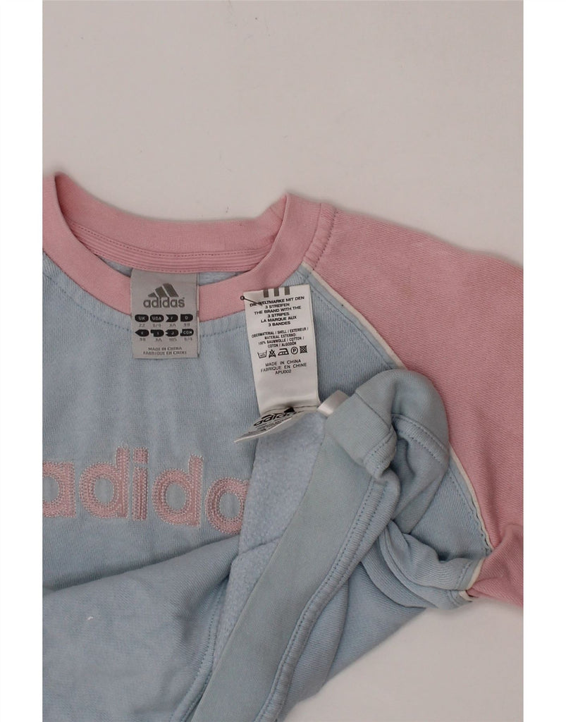 ADIDAS Girls Graphic Sweatshirt Jumper 2-3 Years Blue Colourblock Cotton