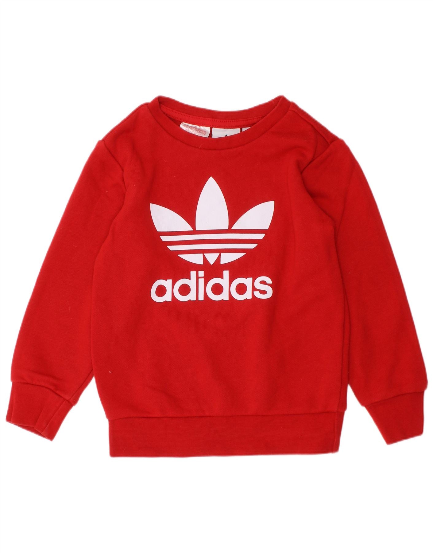 ADIDAS Girls Graphic Sweatshirt Jumper 2-3 Years Red Cotton