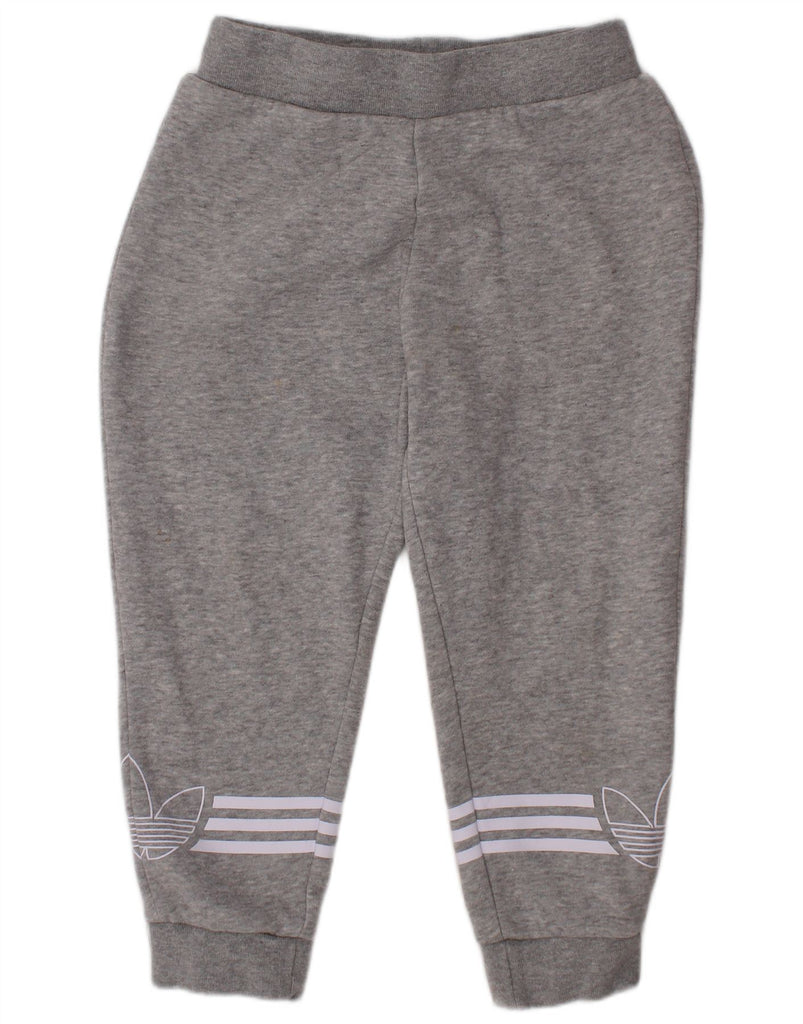ADIDAS Girls Graphic Tracksuit Trousers Joggers 3-4 Years Grey Cotton