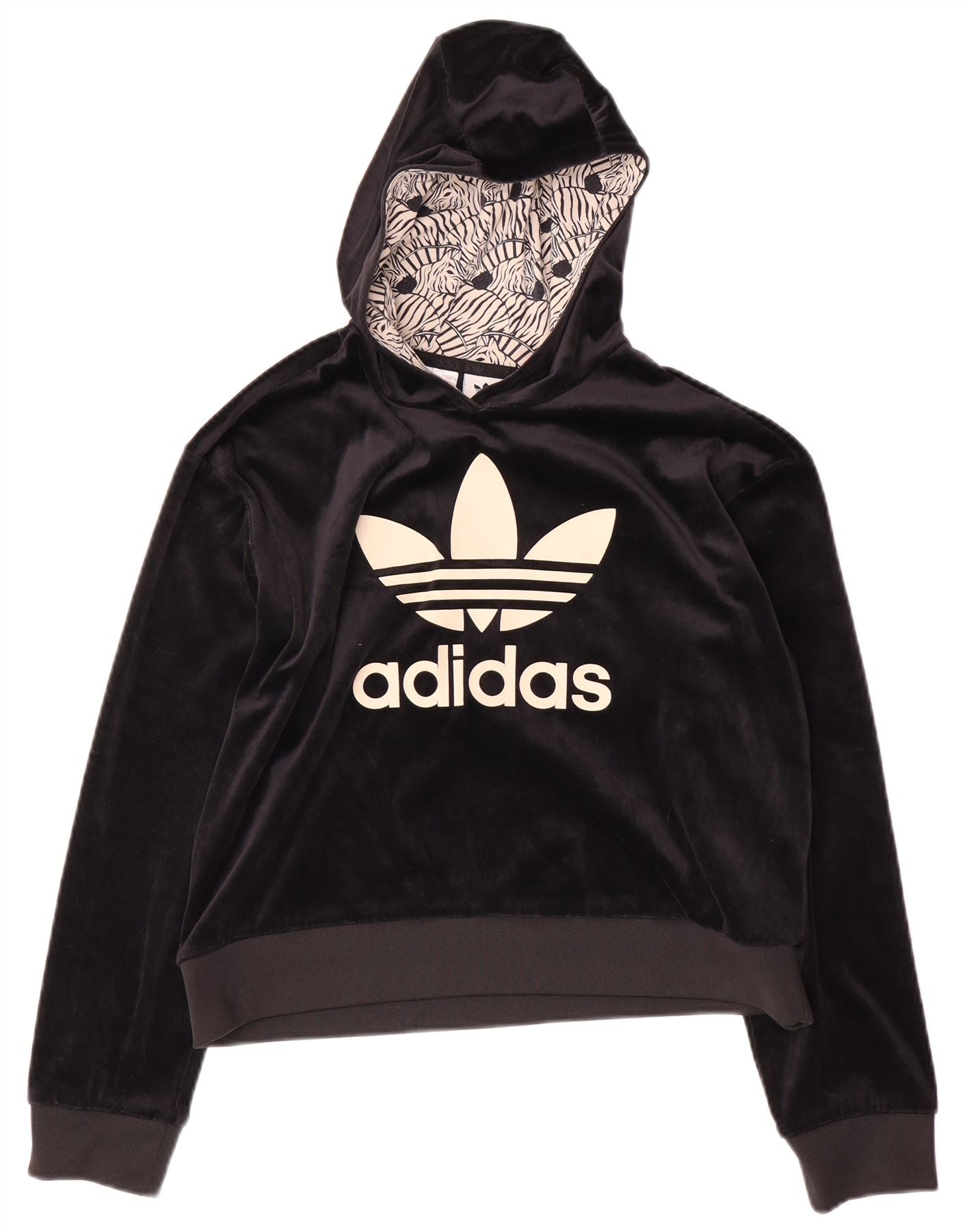 ADIDAS Girls Graphic Velour Hoodie Jumper 13-14 Years Black