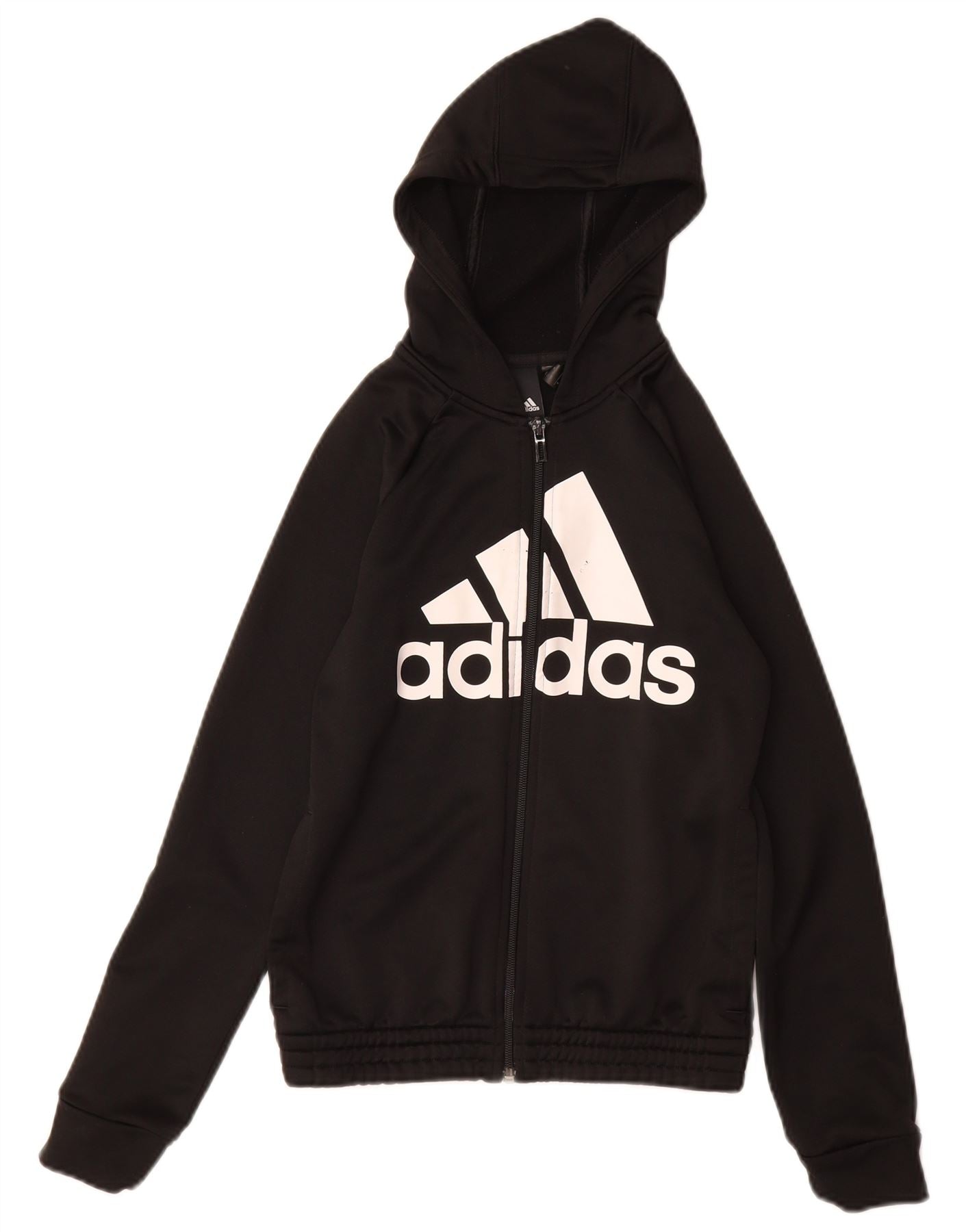 ADIDAS Girls Graphic Zip Hoodie Sweater 11-12 Years Black Polyester