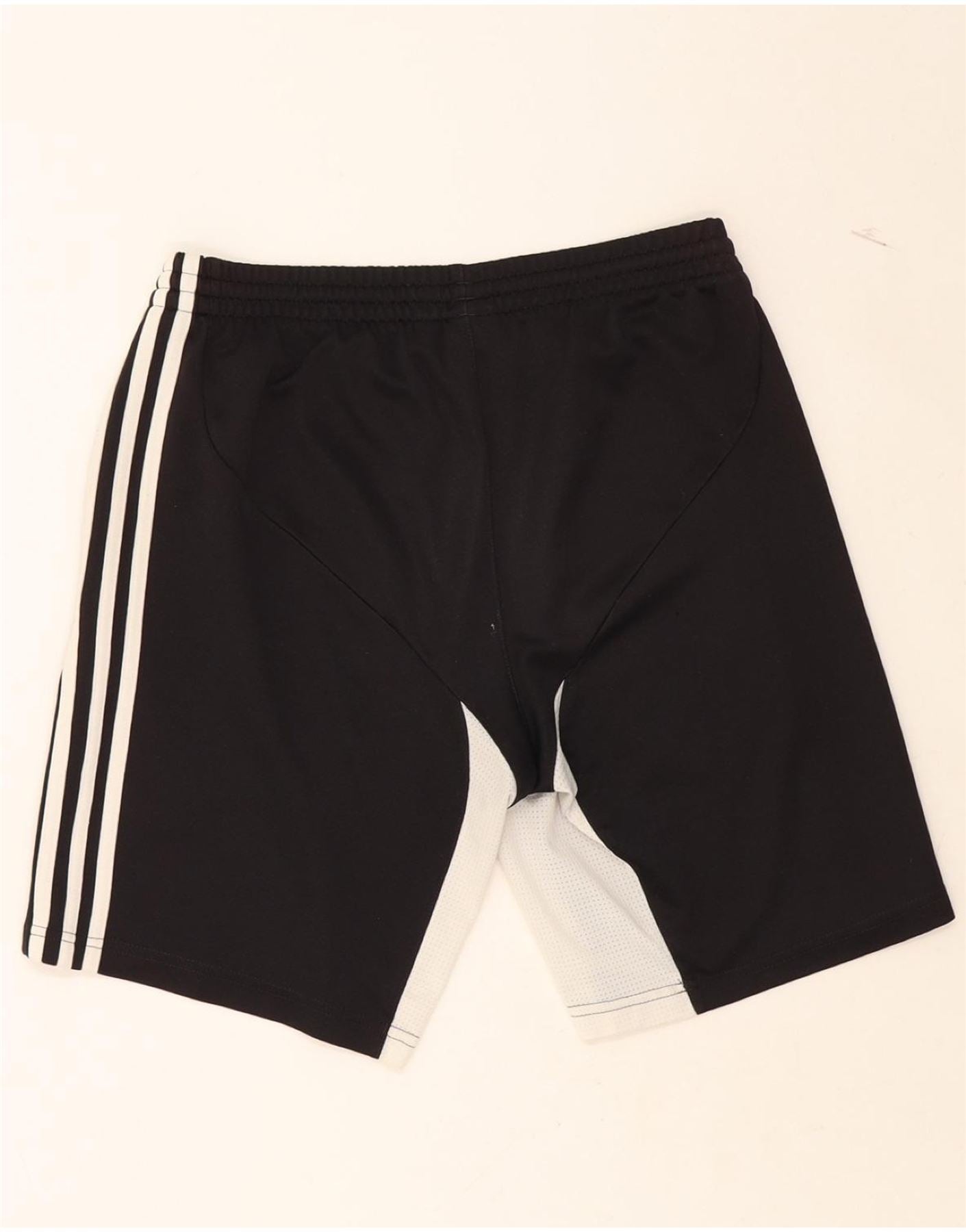 - AI Description: These pre-owned Adidas sports shorts are perfect for active wear. Crafted in China from woven fabric, these black shorts feature a striped pattern and a comfortable regular fit. The elastic and adjustable drawstring waist ensures a secure fit. Accented with the Adidas logo, they also include practical pockets. Label size S. Condition: Excellent.