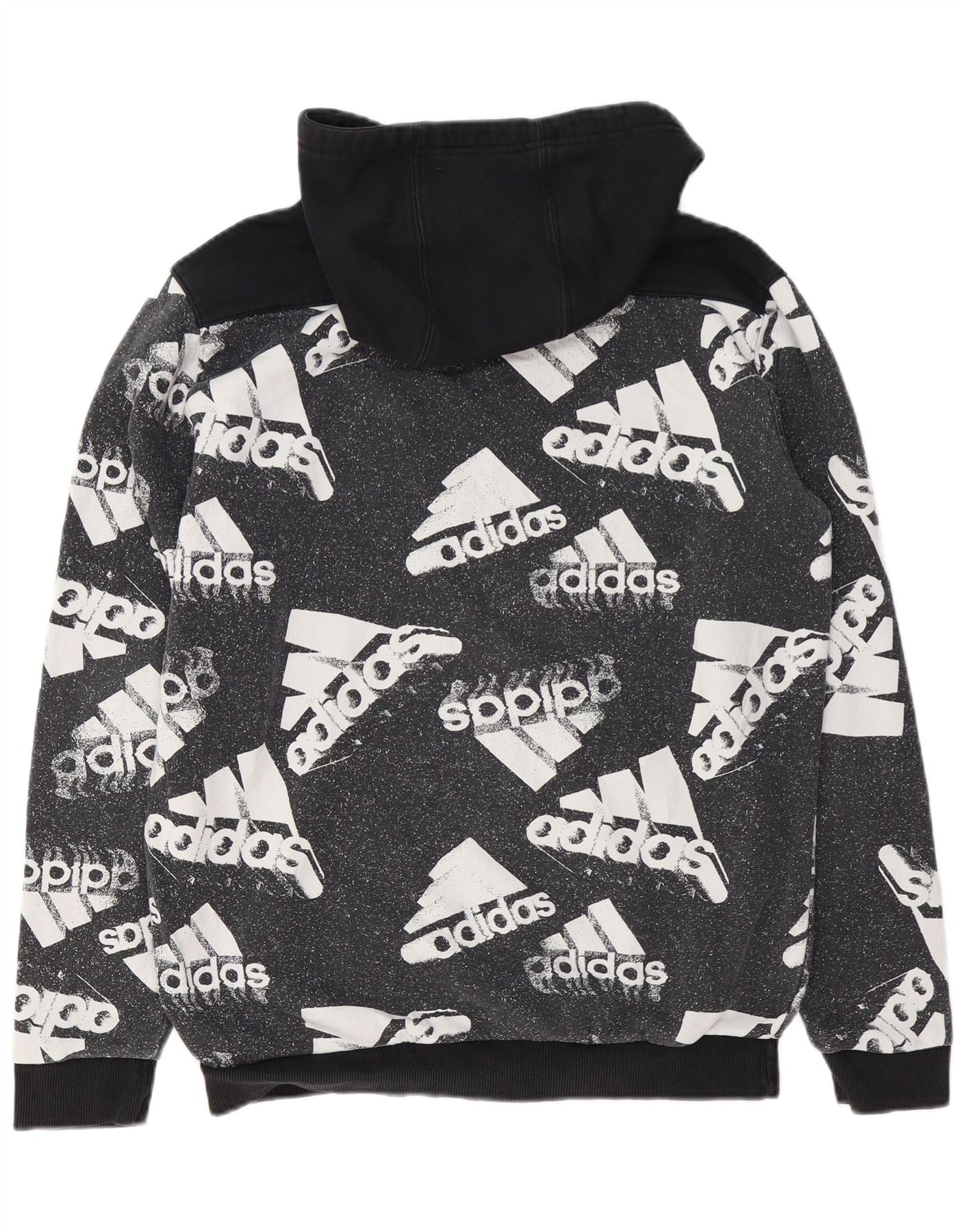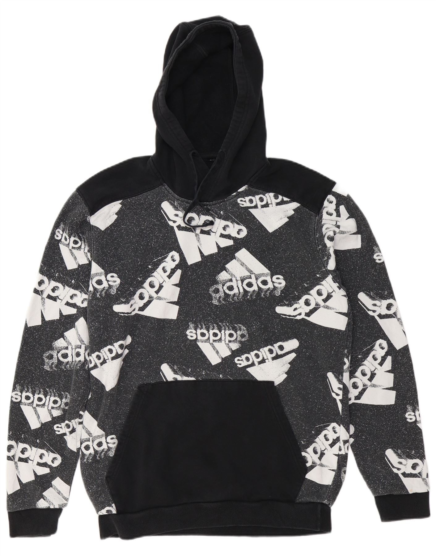 ADIDAS Mens Graphic Hoodie Jumper Large Black Colourblock Cotton