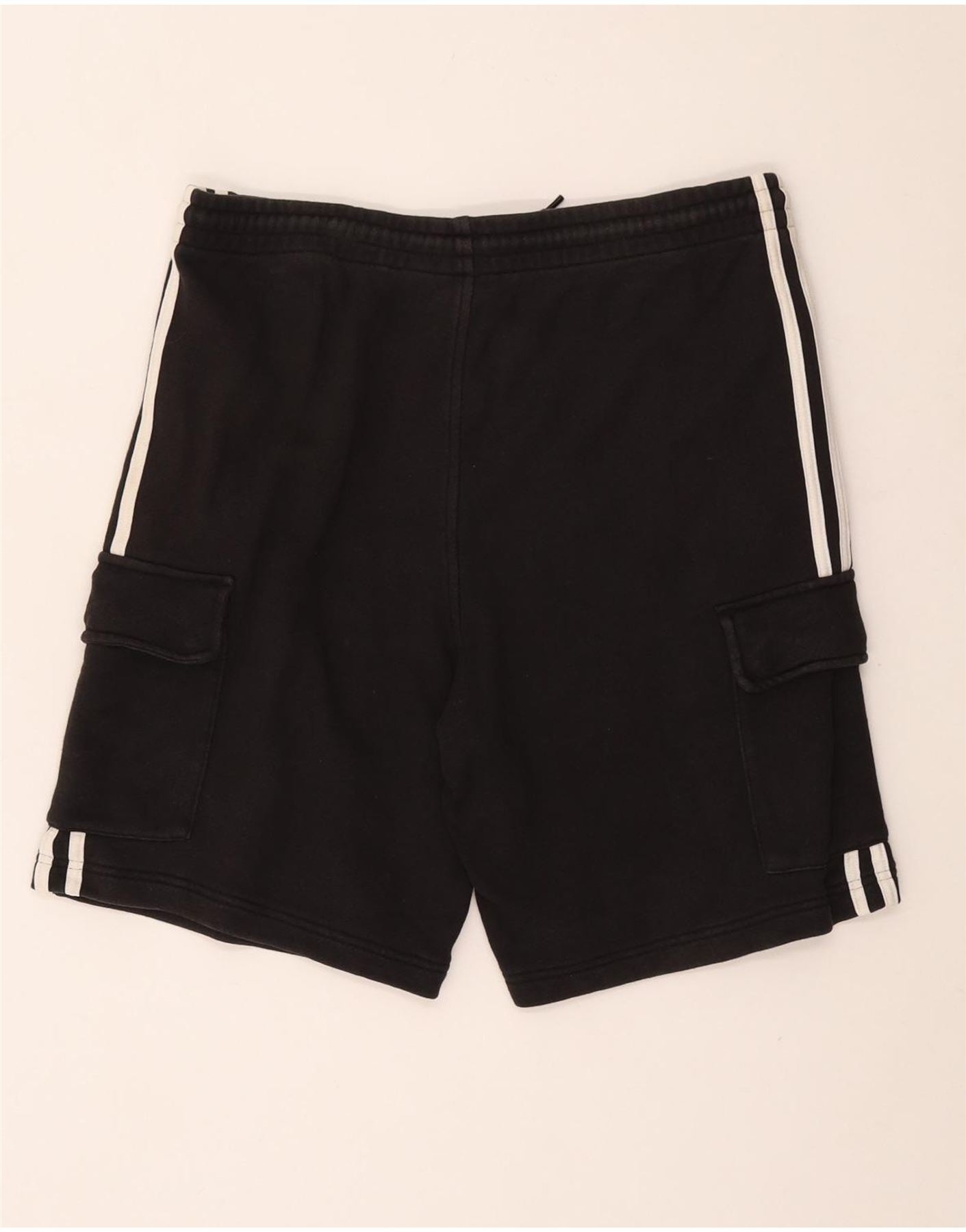 - AI Description: These Adidas men's cargo shorts are made from black knit cotton. They feature a drawstring closure and a regular fit. The adjustable waist and pockets add practicality. The classic three-stripe design runs down the sides. These shorts offer a comfortable, sporty style.