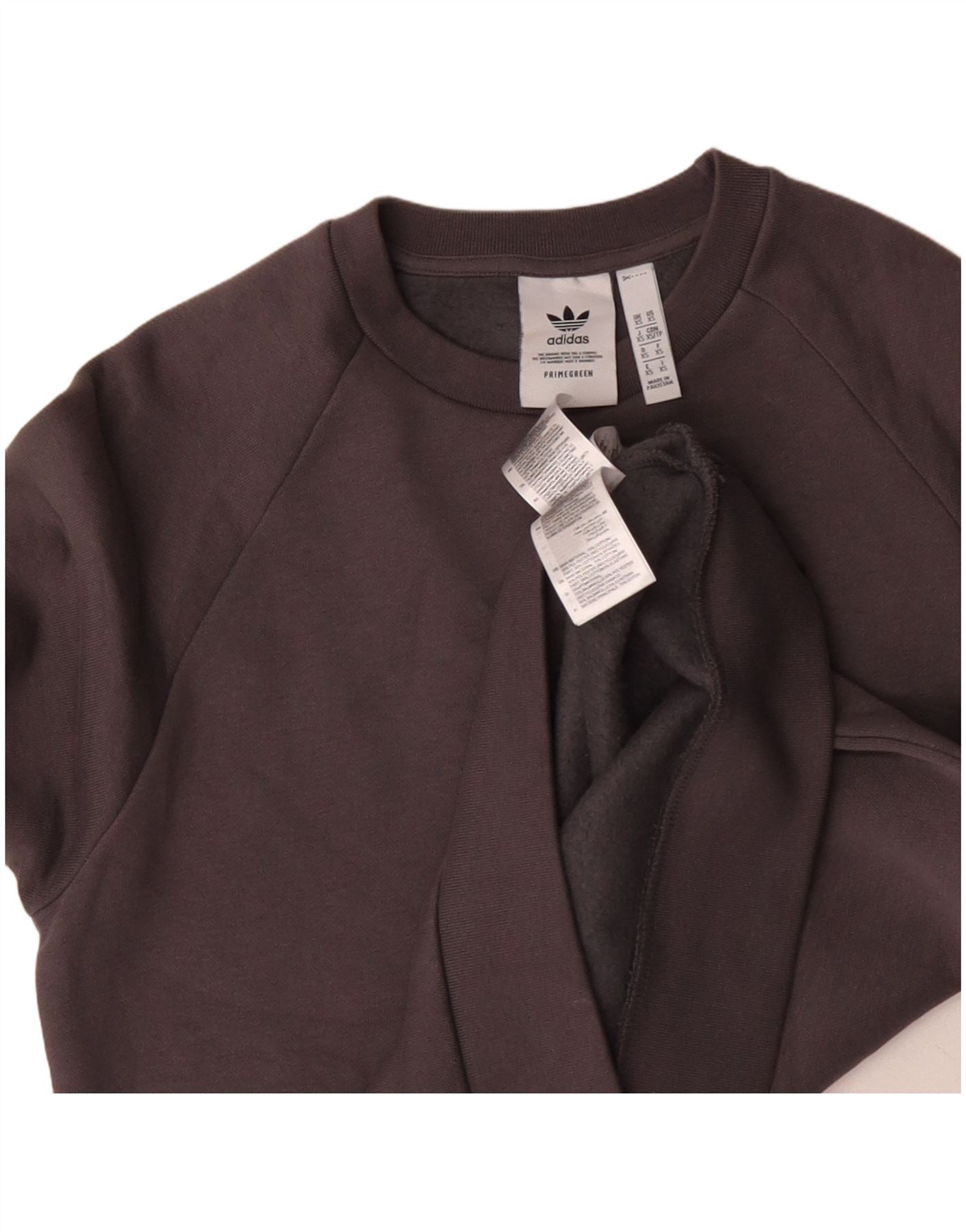 - AI Description: This Adidas mens sweatshirt jumper is crafted from soft brown 100 percent polyester fleece knit. It features a classic round neck and long sleeves. The pullover design offers a regular fit for comfort. An embroidered Adidas logo subtly accents the chest. This PRIMEGREEN style is breathable and offers stretch, ideal for sports or casual wear.