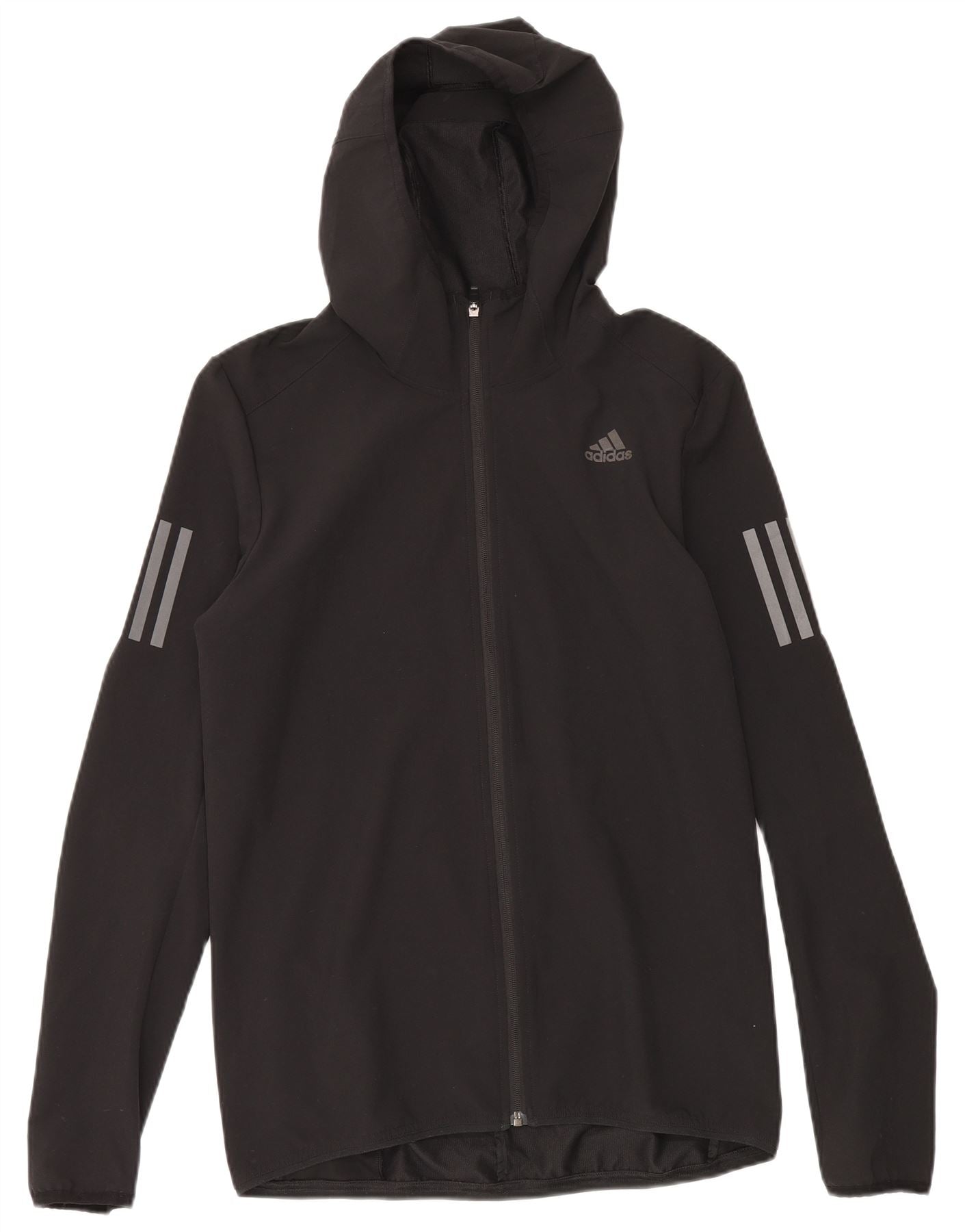 ADIDAS Mens Running Hooded Windbreaker Jacket UK 36 Small Black Polyester