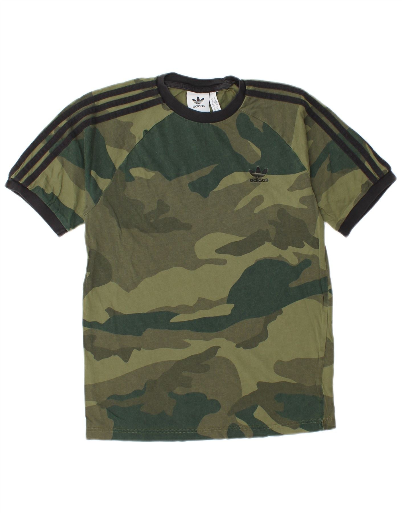 ADIDAS Mens T-Shirt Top Small Khaki Camouflage Cotton