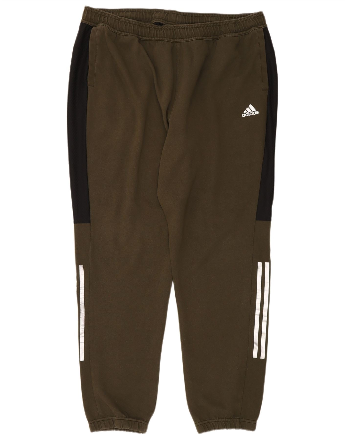 ADIDAS Mens Tracksuit Trousers Joggers 2XL Khaki Colourblock Polyester