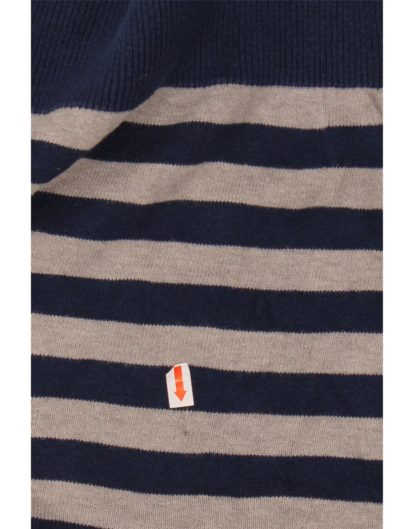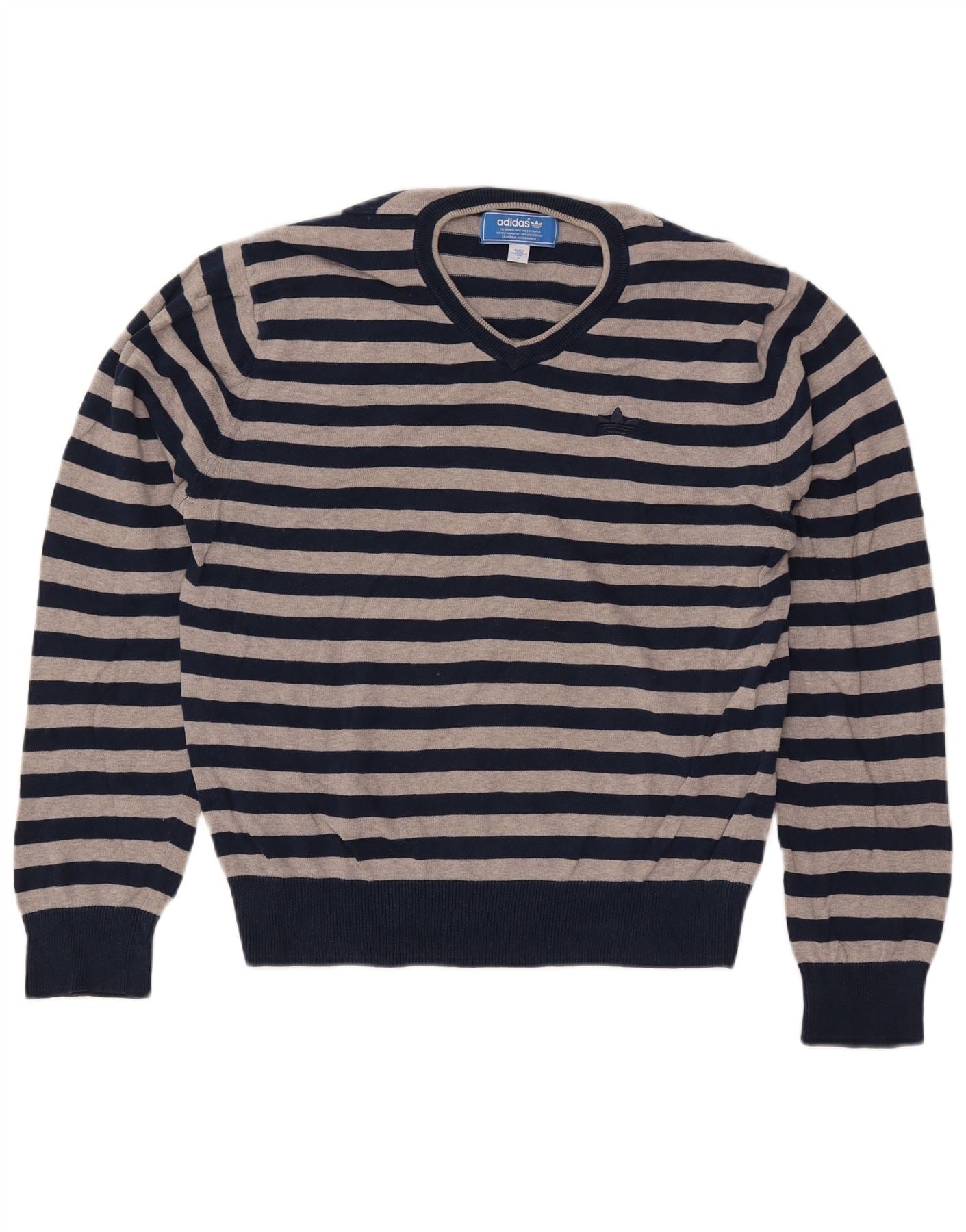 ADIDAS Mens V-Neck Jumper Sweater Small Navy Blue Striped Cotton