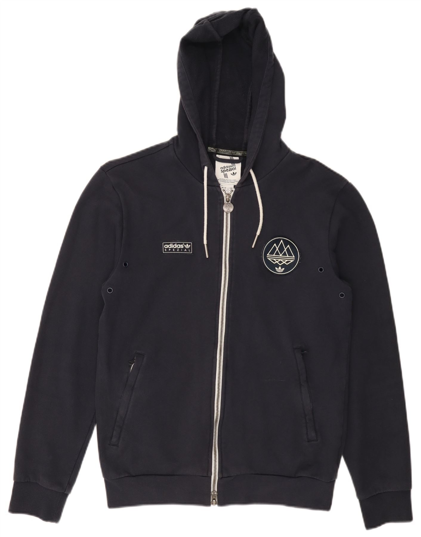 ADIDAS Mens Zip Hoodie Sweater Small Navy Blue Cotton
