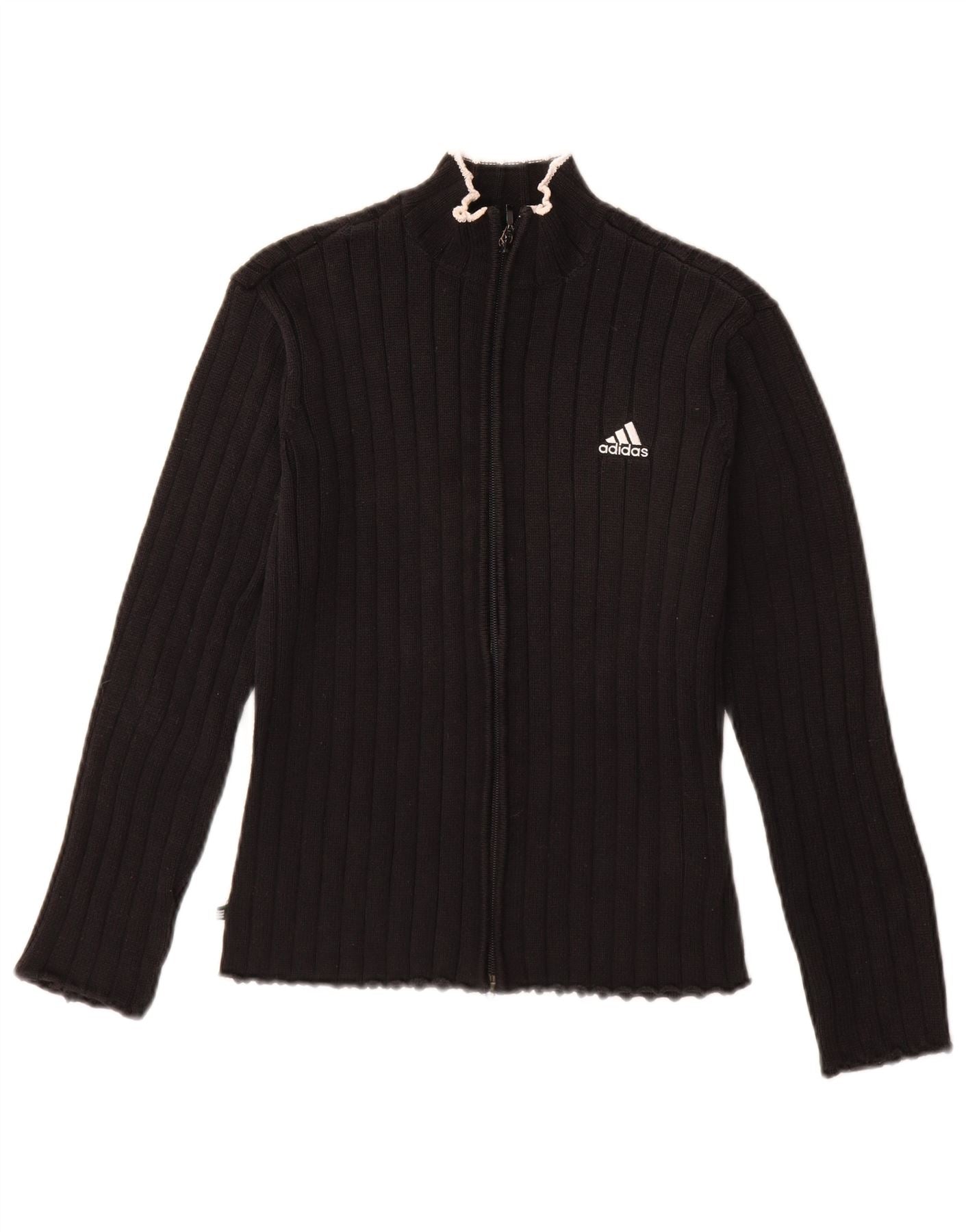 ADIDAS Womens Cardigan Sweater UK 12 Medium Black Cotton