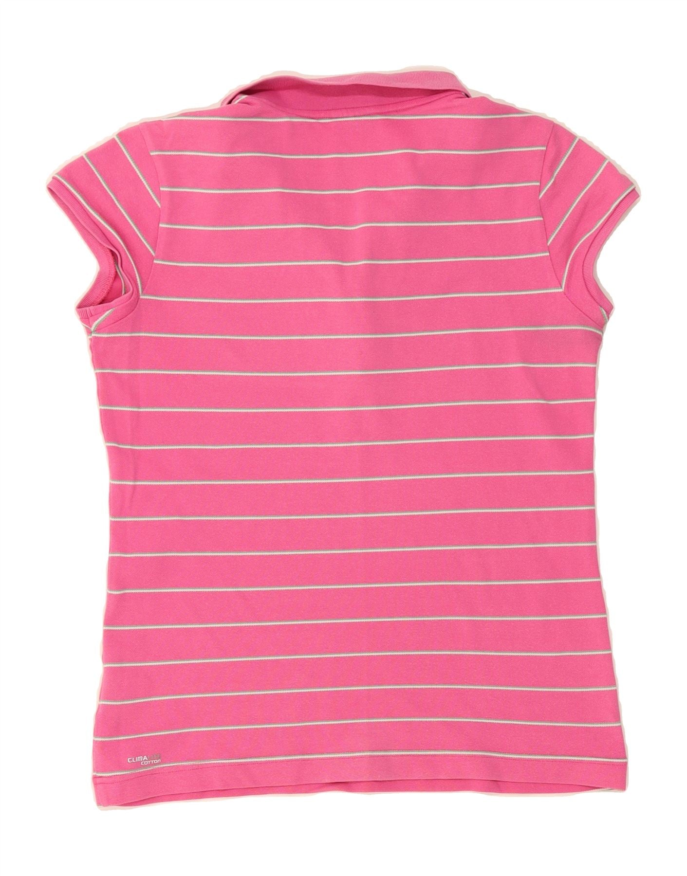 ADIDAS Womens Clima 365 Polo Shirt UK 16 Large Pink Striped Cotton