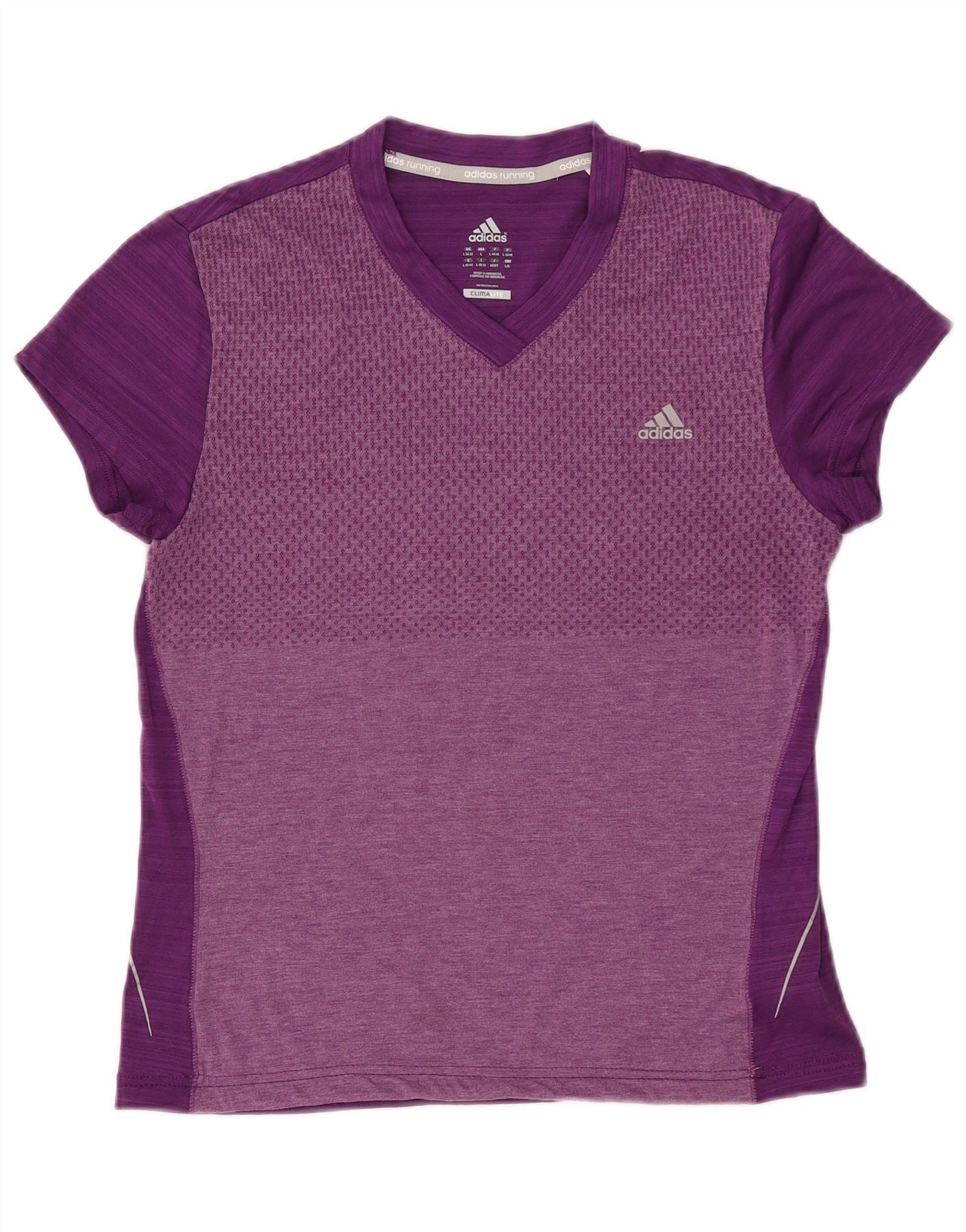 ADIDAS Womens Climalite T-Shirt Top UK 14 Large Purple Colourblock