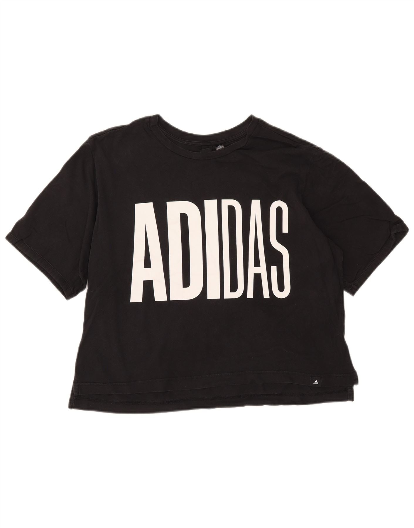 ADIDAS Womens Crop Graphic T-Shirt Top UK 16/18 Large Black Cotton