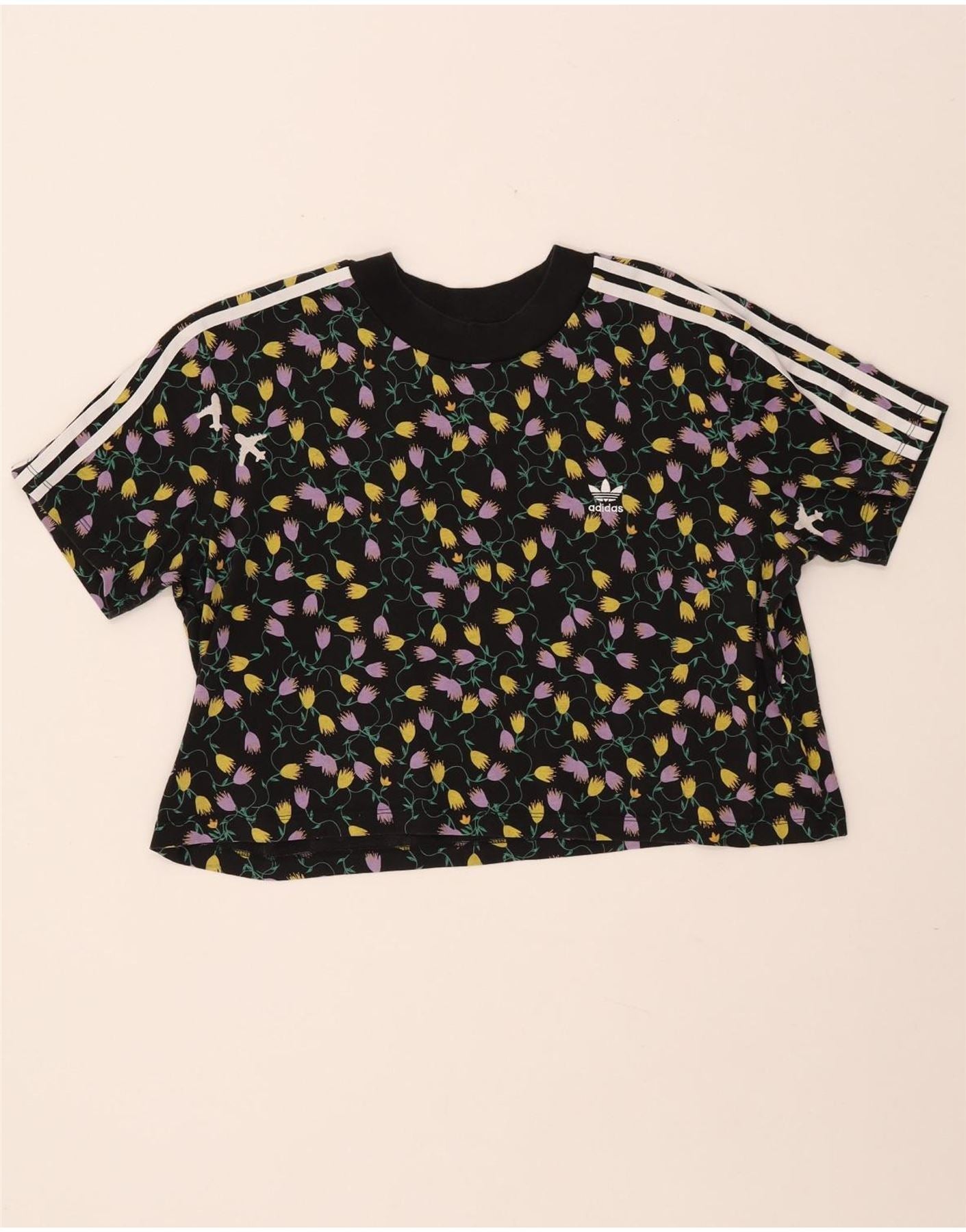 ADIDAS Womens Crop Graphic T-Shirt Top UK 18 XL Black Floral Cotton