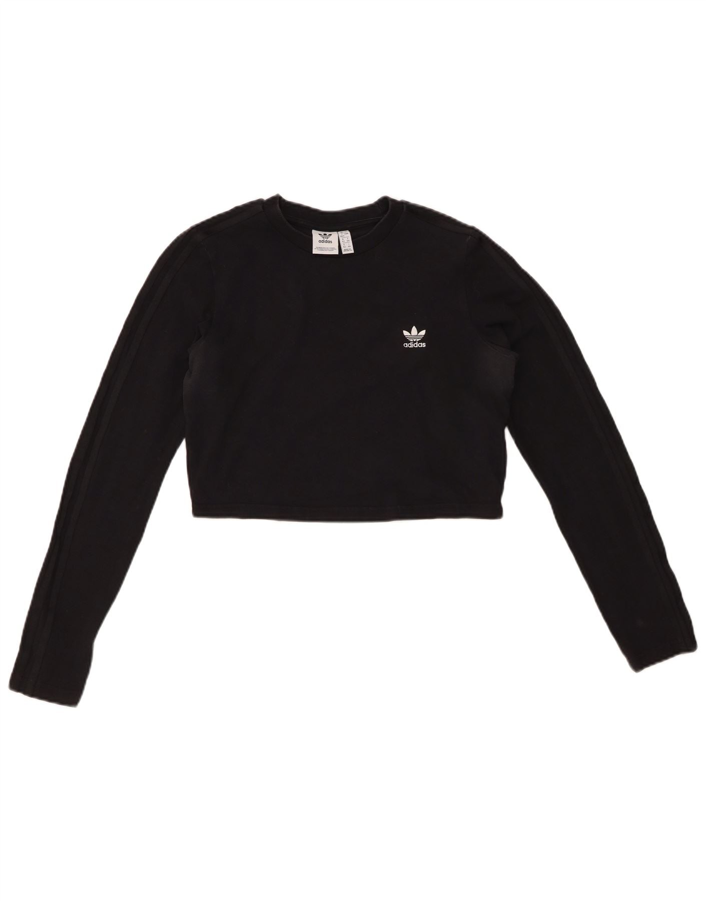 ADIDAS Womens Crop Top Long Sleeve UK 16 Large Black Cotton
