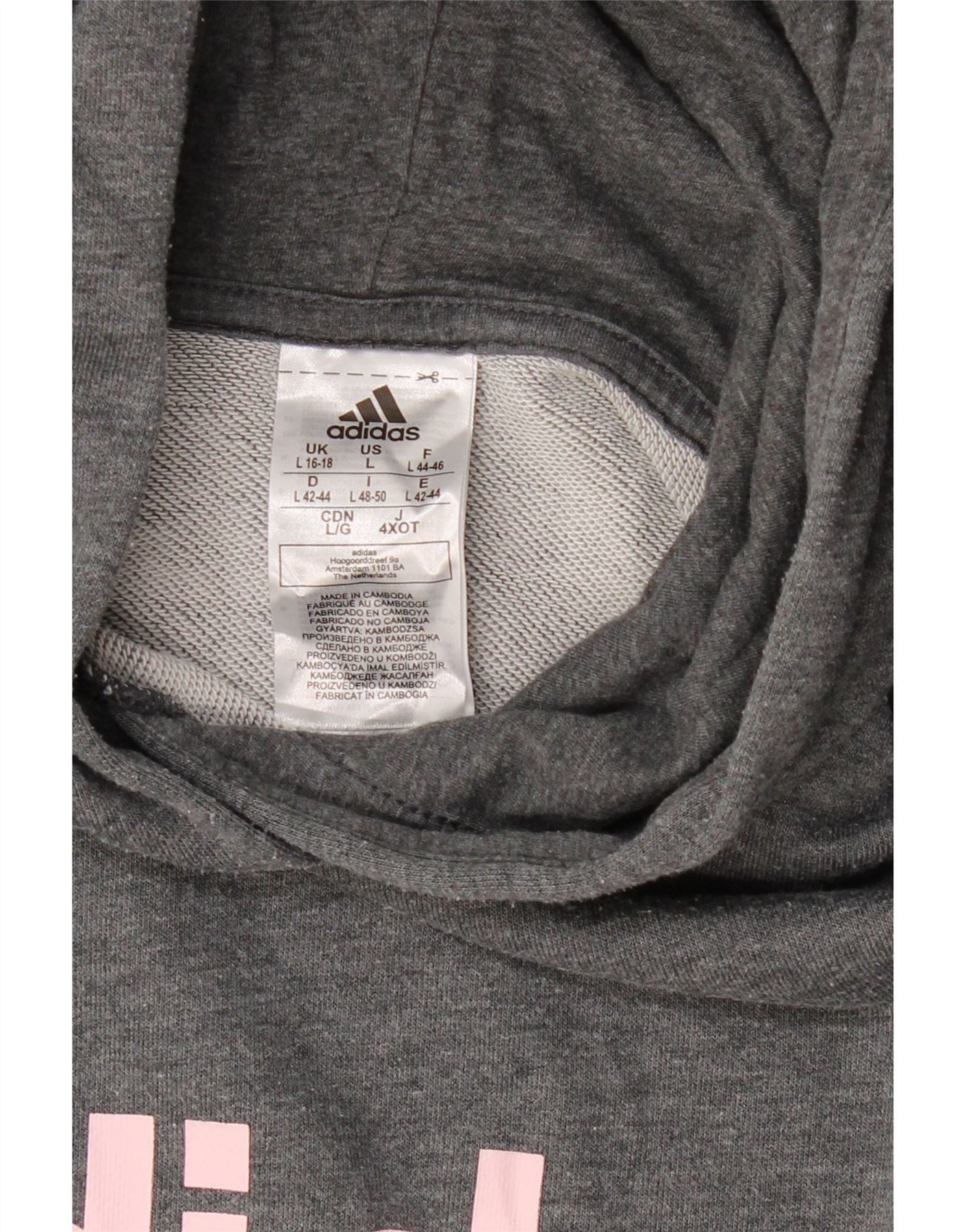 ADIDAS Womens Graphic Hoodie Jumper UK 16/18 Large Grey Polyester