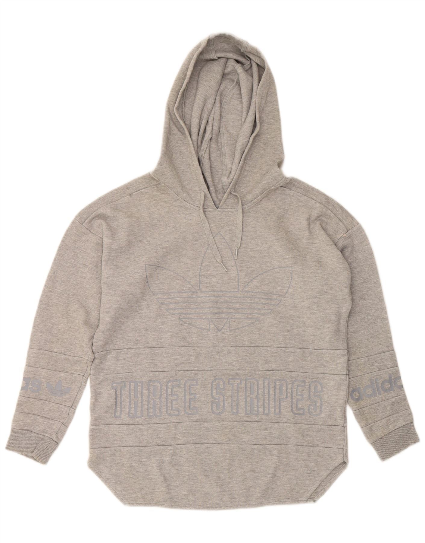 ADIDAS Womens Graphic Oversized Hoodie Jumper UK 8 Small Grey Cotton