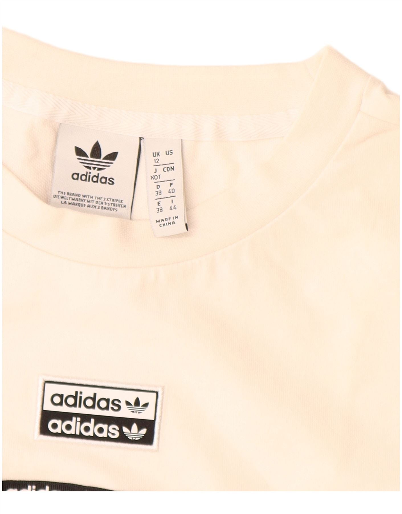 ADIDAS Womens Graphic T-Shirt Dress UK 12 Medium Off White Cotton