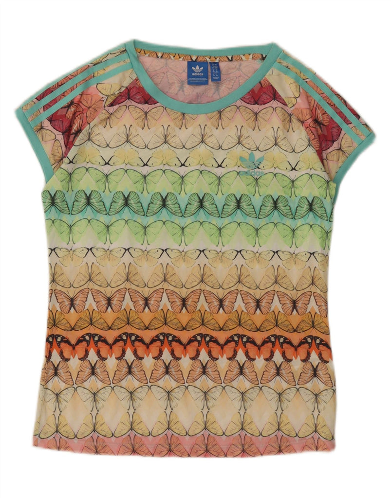 ADIDAS Womens Graphic T-Shirt Top UK 10 Small Multicoloured Butterfly